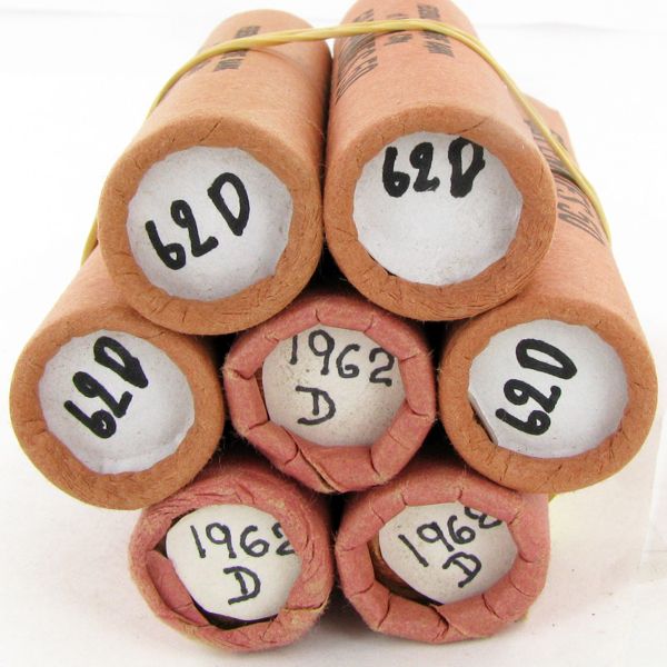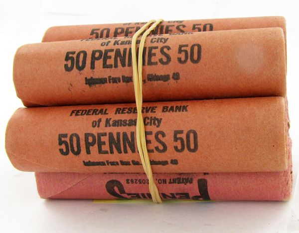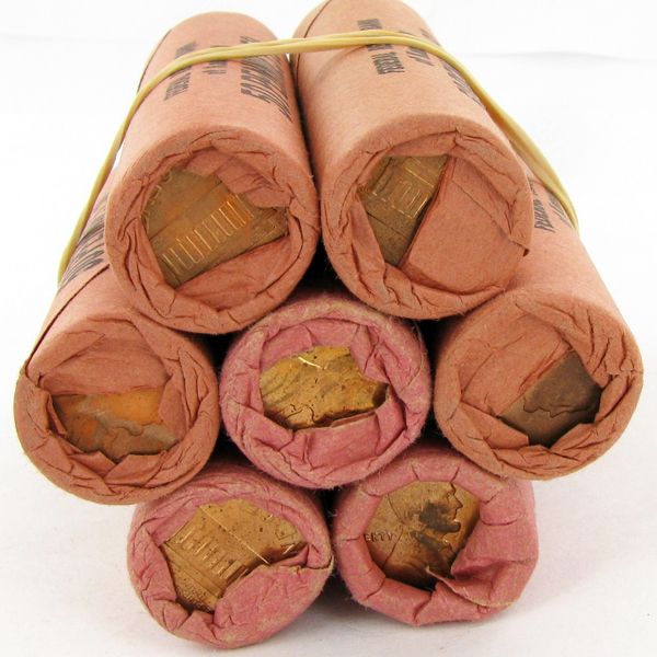 21 rolls, 350 scarce never viewed uncirculated Lincoln cents; huge potential for gem coins, over-mintmarks, errors & varieties; just one gem can be worth $5,000