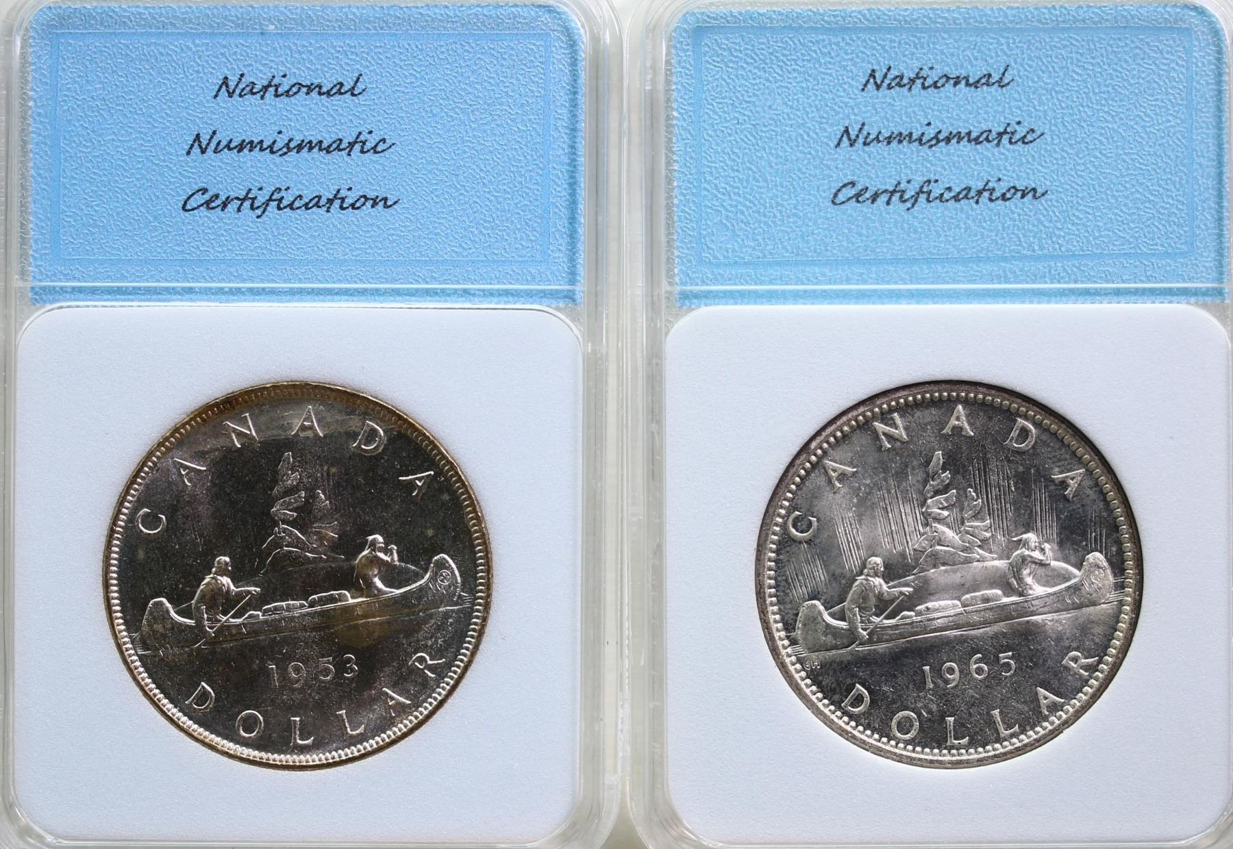 1963 $1, 1965 Both coins Unc-60 (NNC Choice Mint State-64 & MS-68)