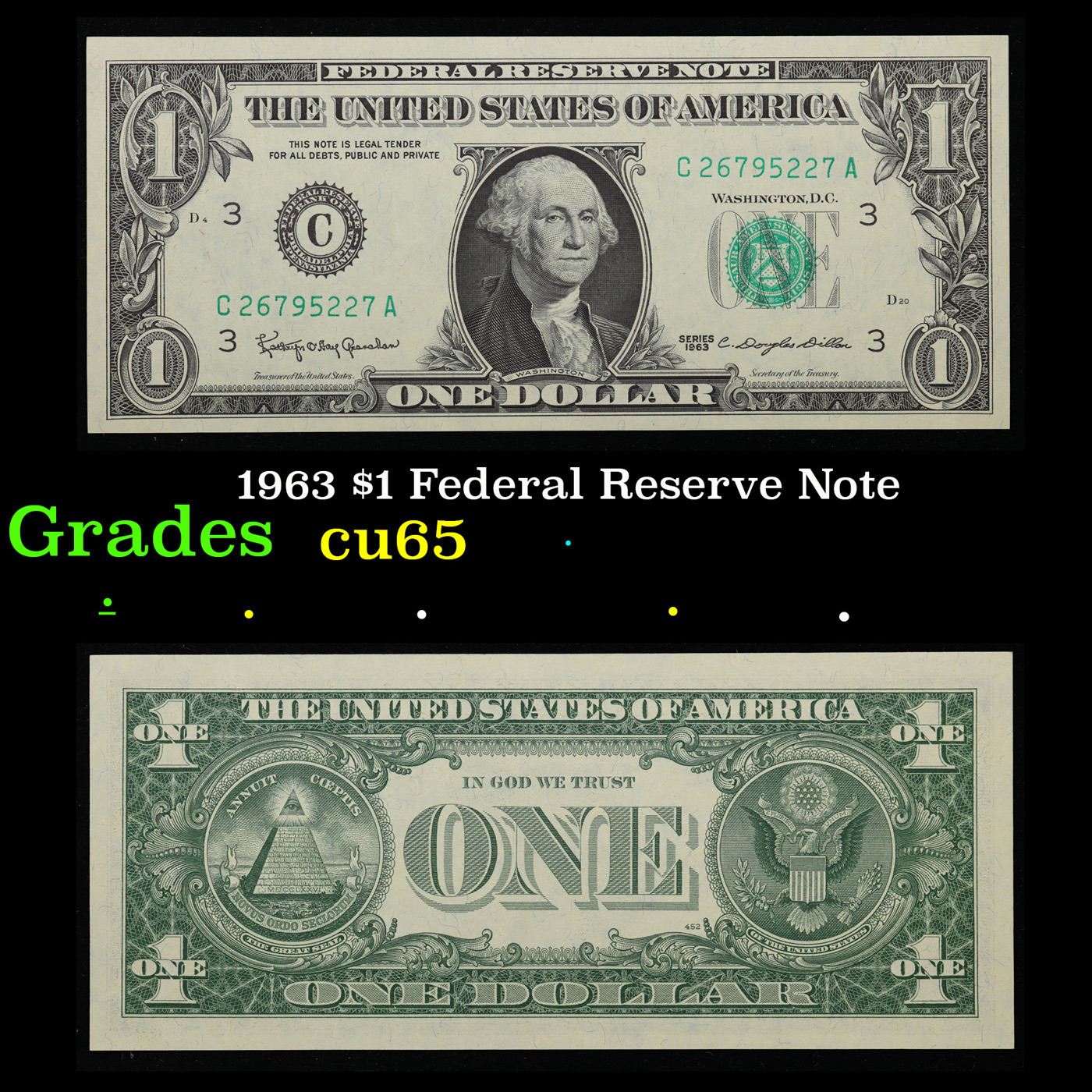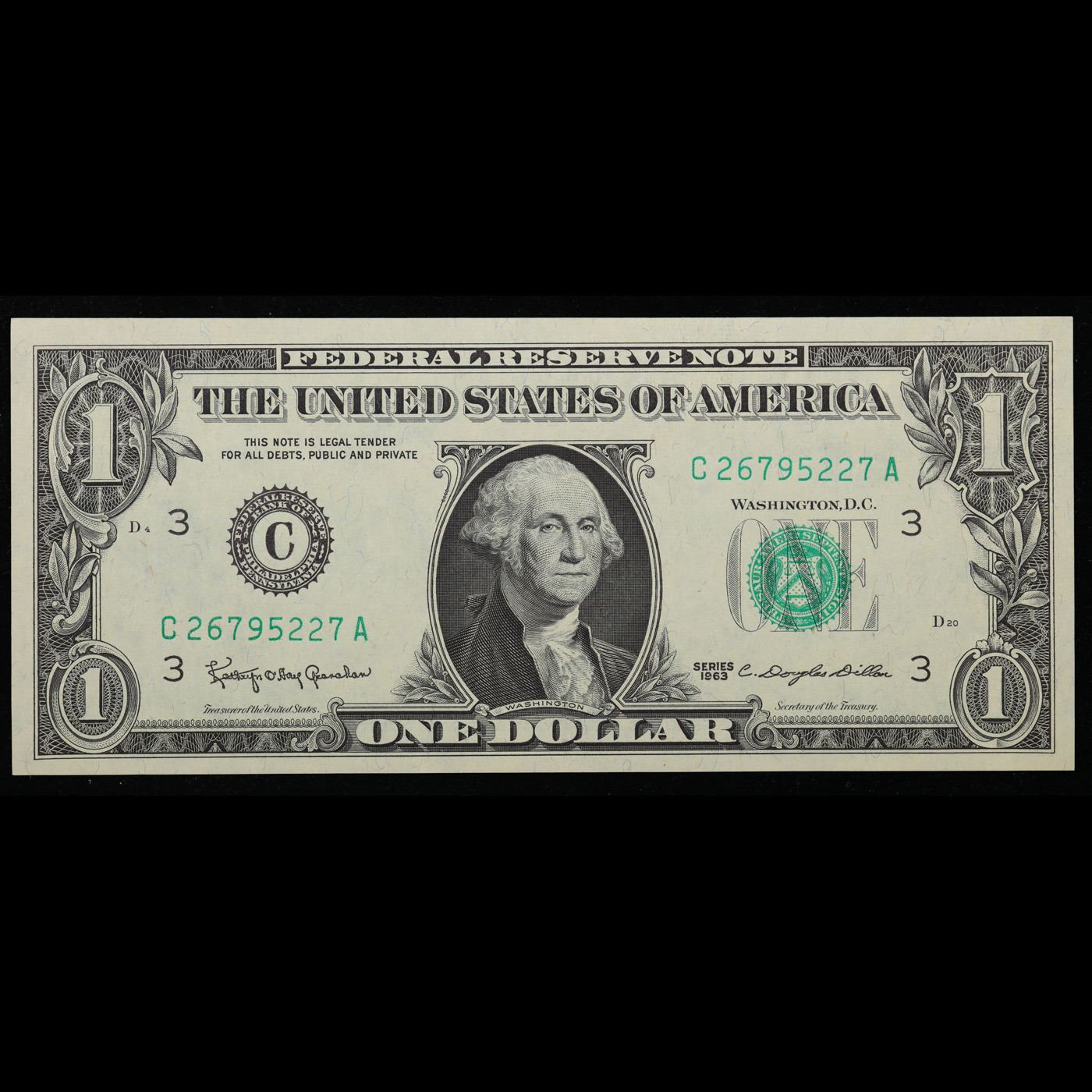 1963 $1 Federal Reserve Note Grades Gem CU.