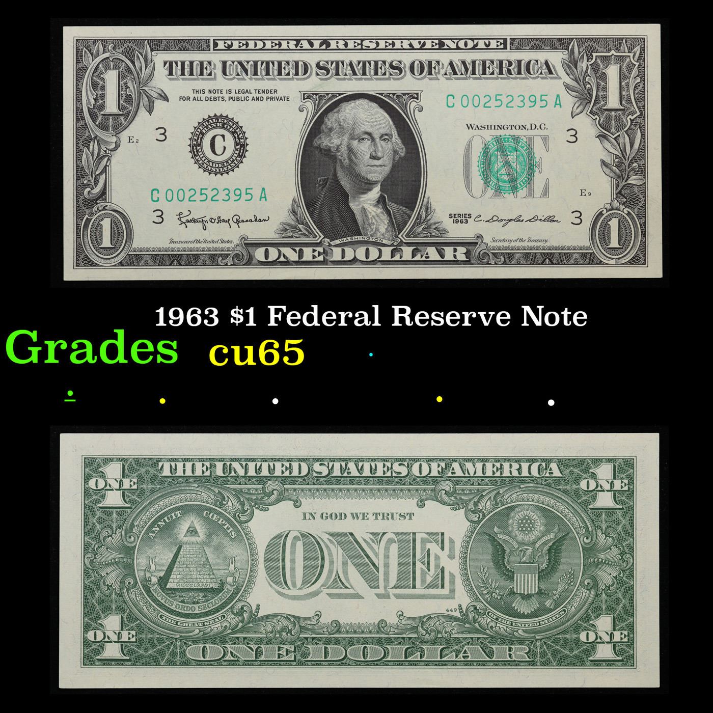 1963 $1 Federal Reserve Note Grades Gem CU.