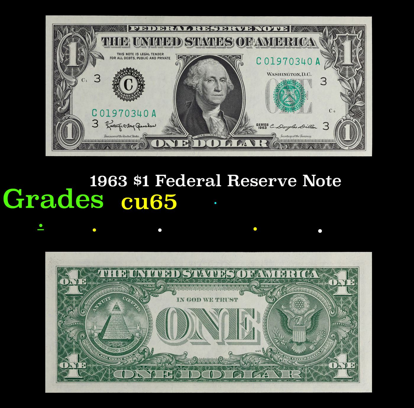 1963 $1 Federal Reserve Note Grades Gem CU.