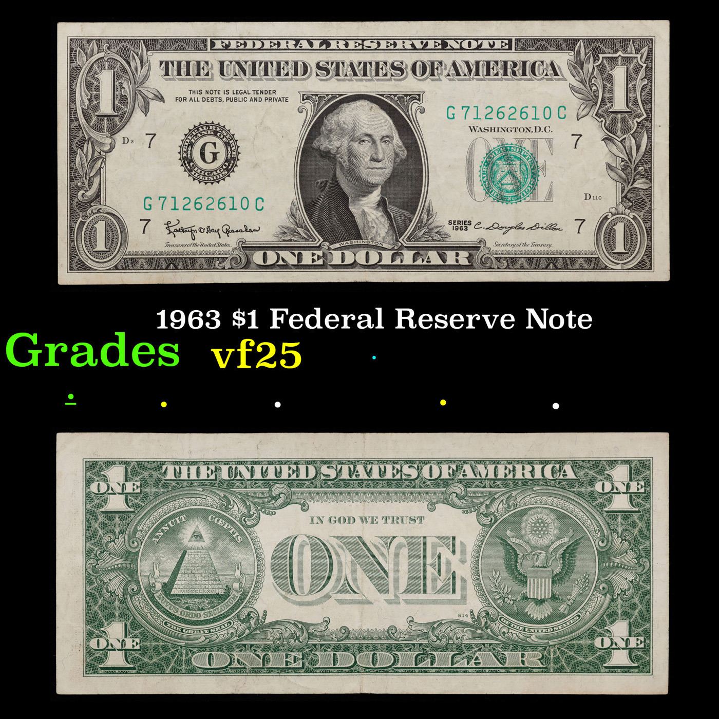 1963 $1 Federal Reserve Note Grades vf+.