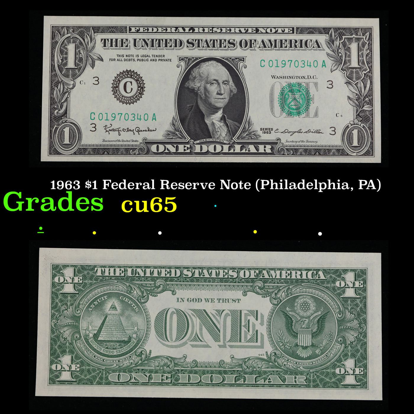 1963 $1 Federal Reserve Note (Philadelphia, PA) Grades Gem CU.
