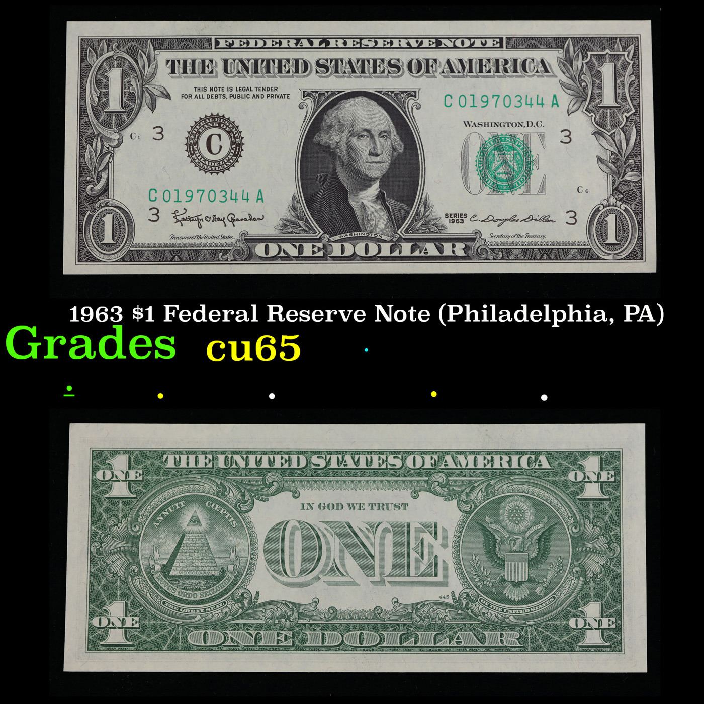 1963 $1 Federal Reserve Note (Philadelphia, PA) Grades Gem CU.