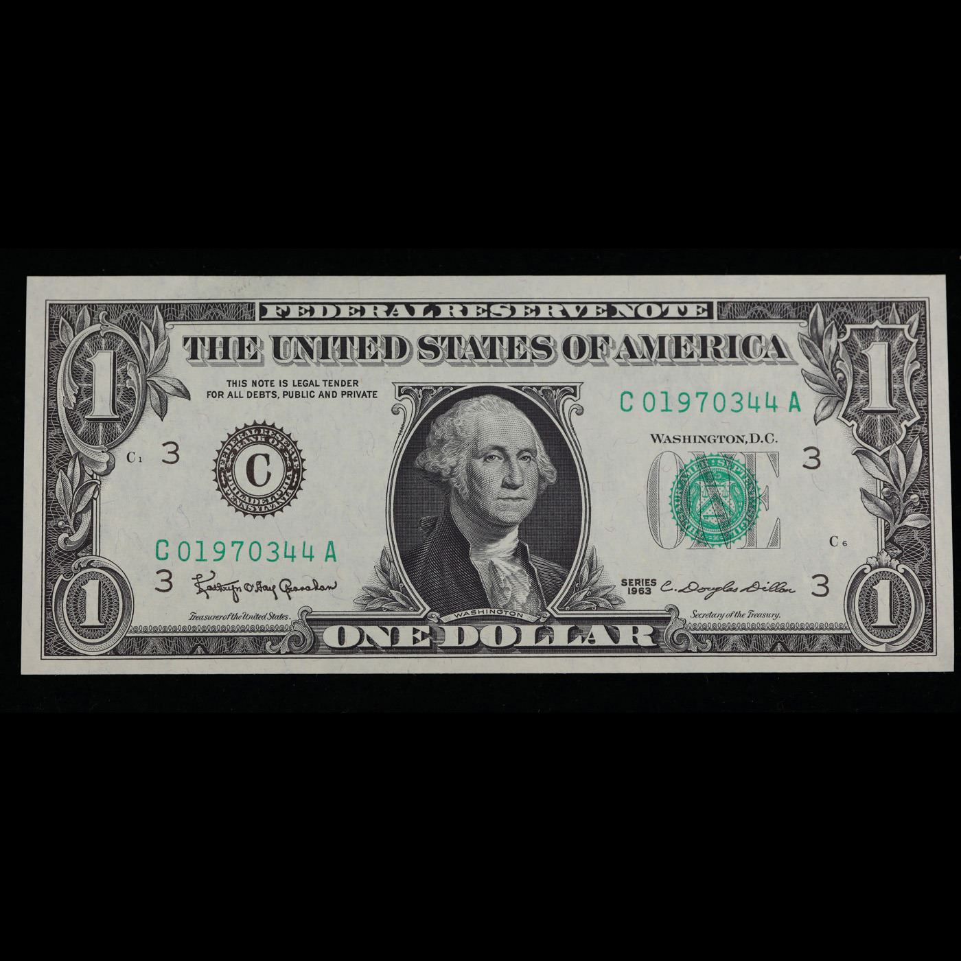 1963 $1 Federal Reserve Note (Philadelphia, PA) Grades Gem CU
