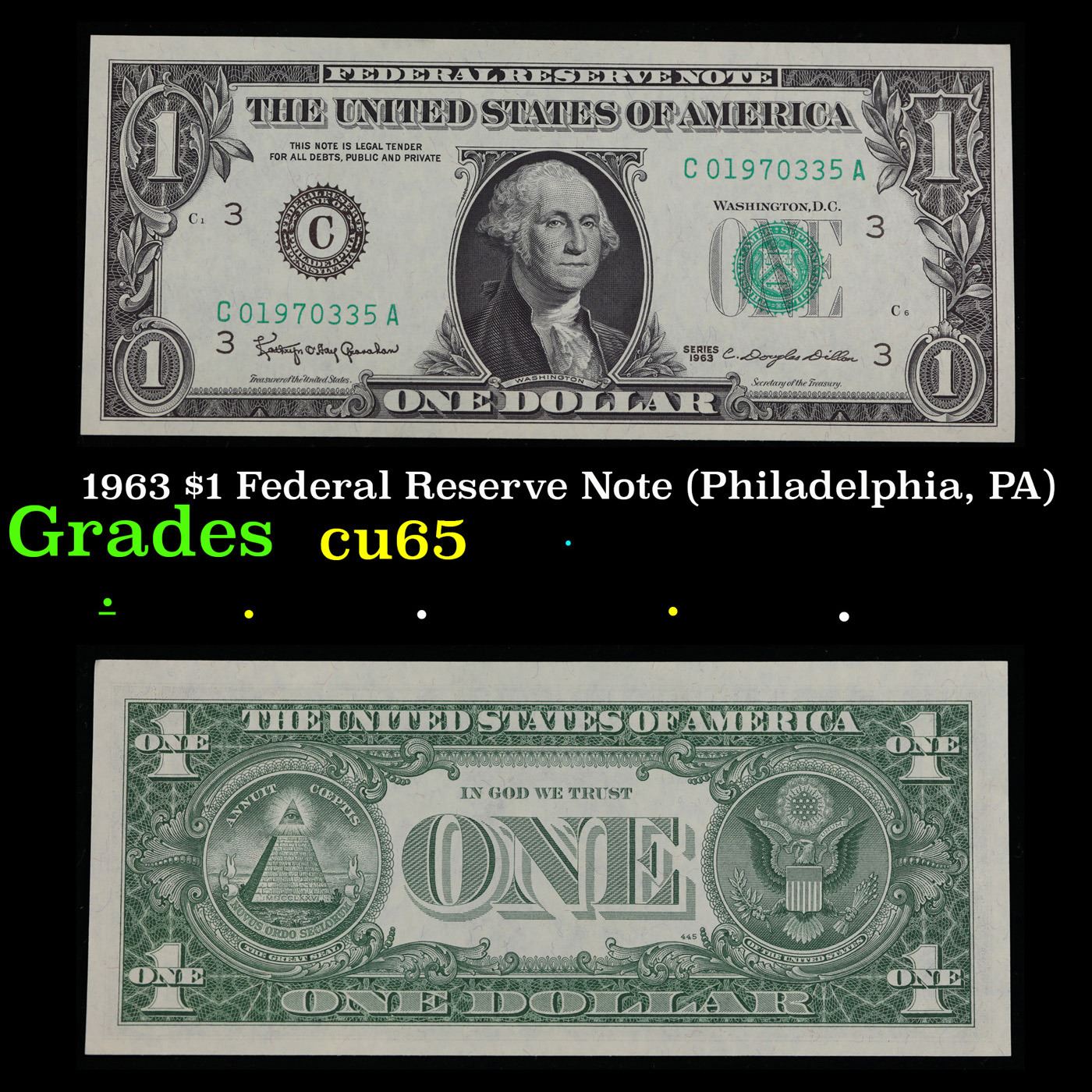 1963 $1 Federal Reserve Note (Philadelphia, PA) Grades Gem CU.