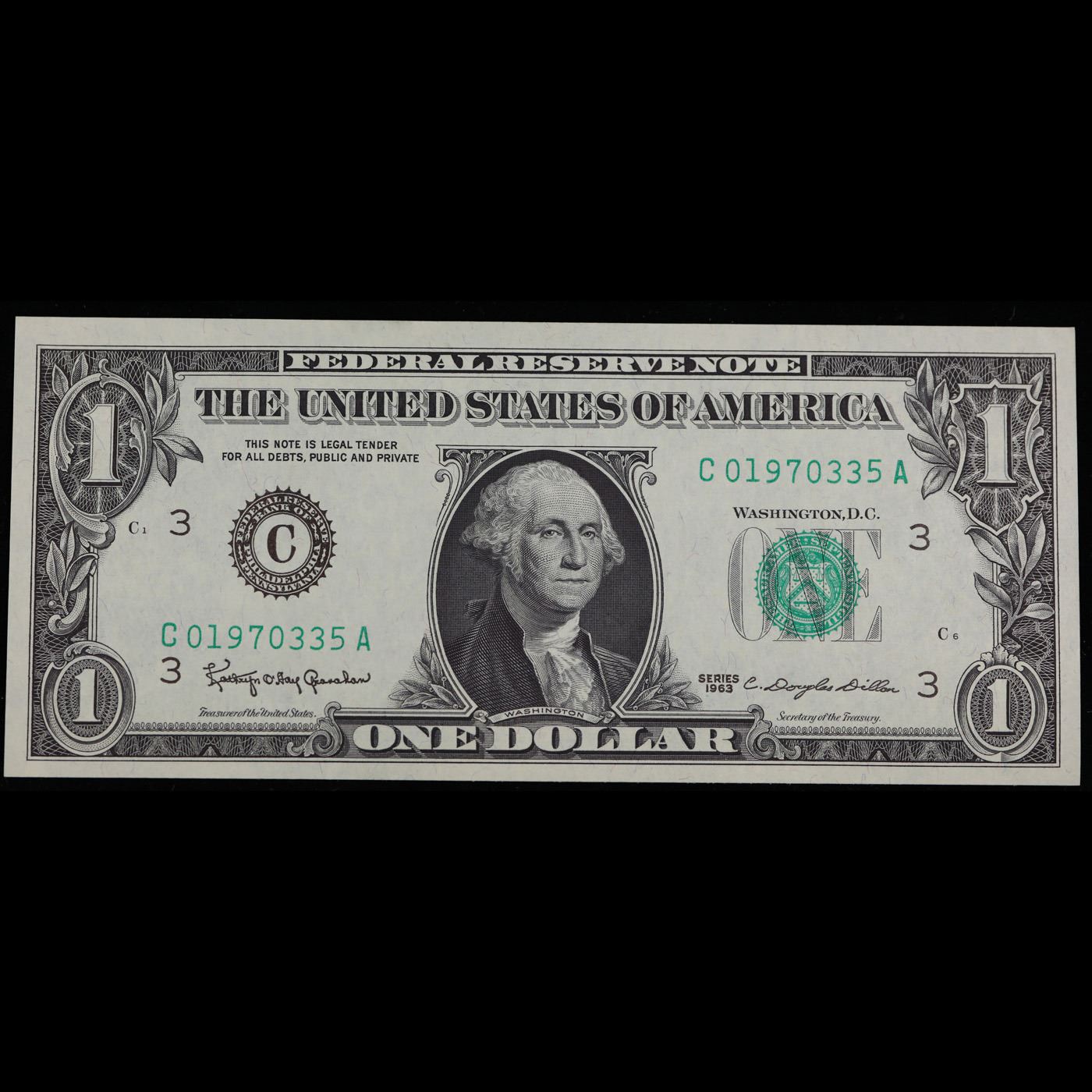 1963 $1 Federal Reserve Note (Philadelphia, PA) Grades Gem CU