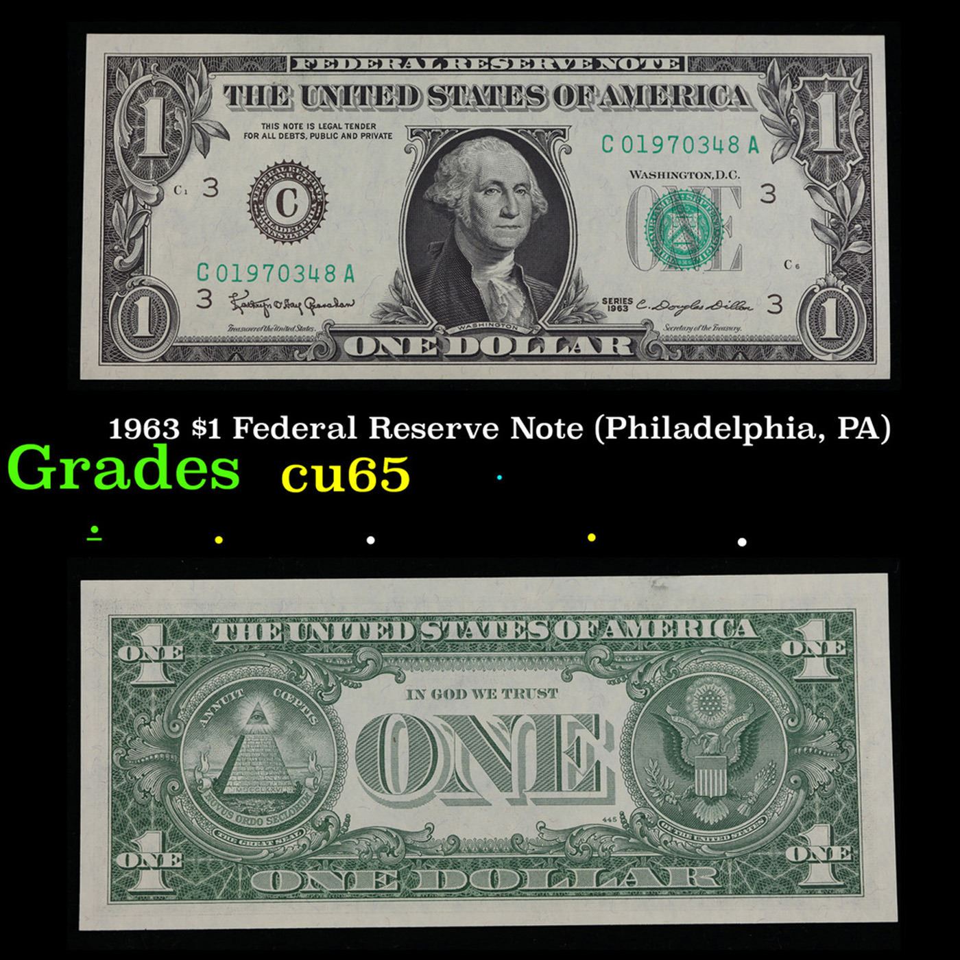 1963 $1 Federal Reserve Note (Philadelphia, PA) Grades Gem CU.