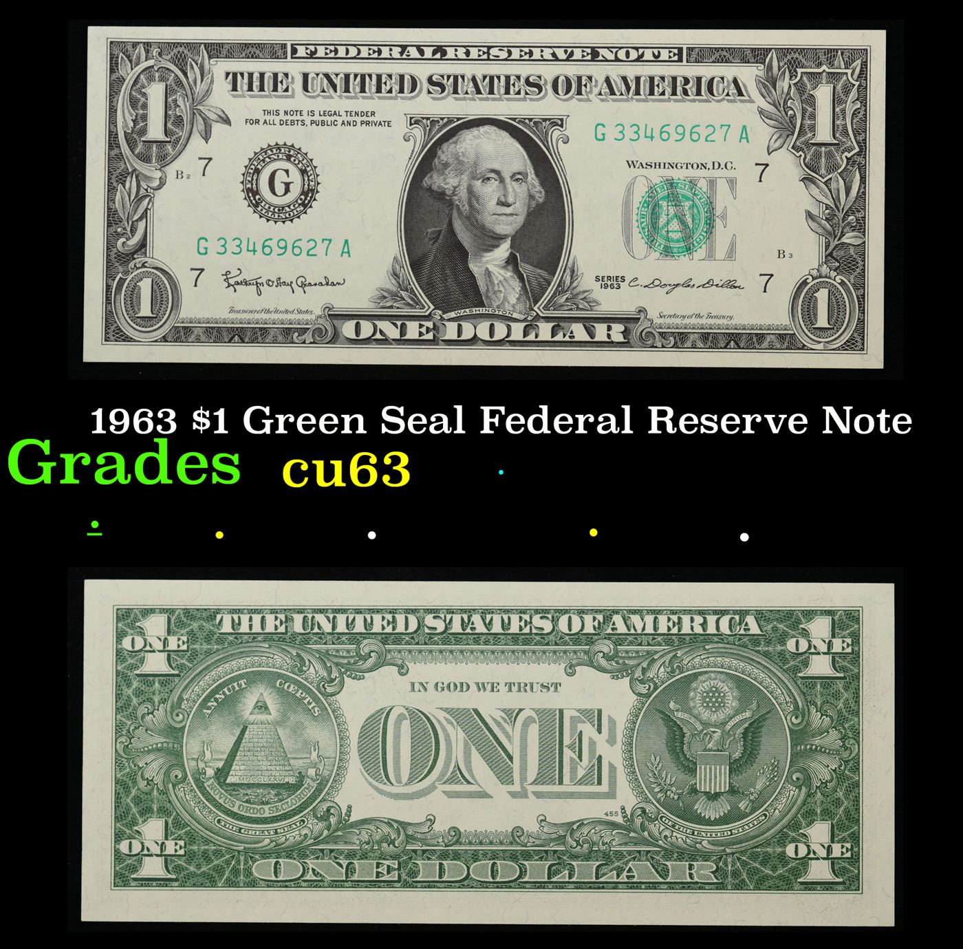 1963 $1 Green Seal Federal Reserve Note Grades Select CU.