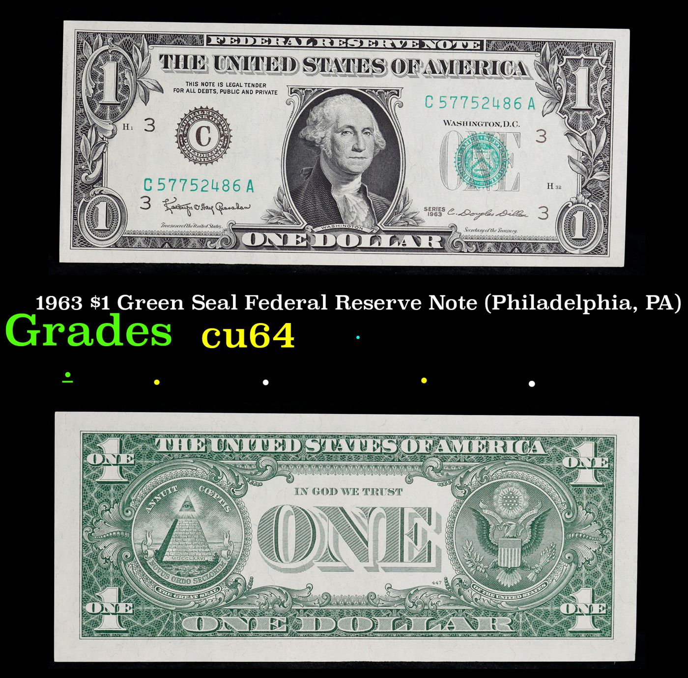 1963 $1 Green Seal Federal Reserve Note (Philadelphia, PA) Grades Choice CU.