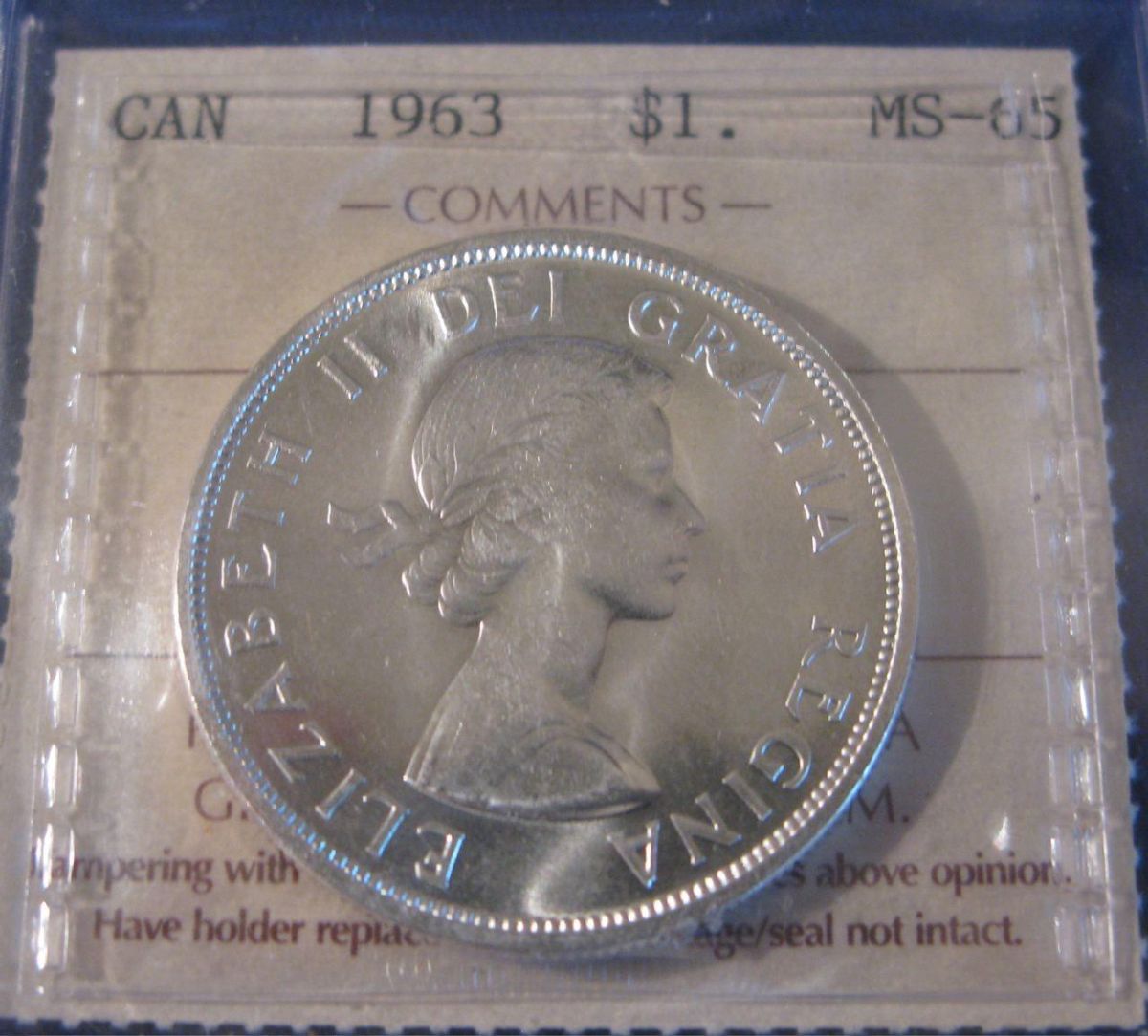 1963 $1 ICCS MS65. Blast white example. ICCS Top 5.