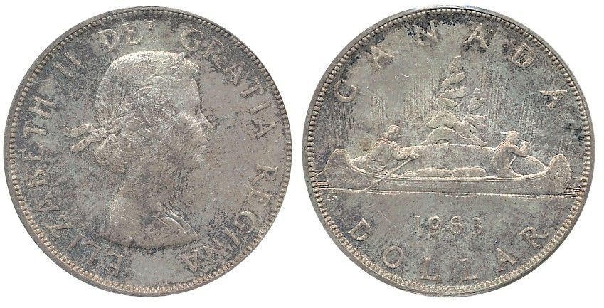 1963 $1 ICCS MS65. Scattered creamlike beige and pink finish.