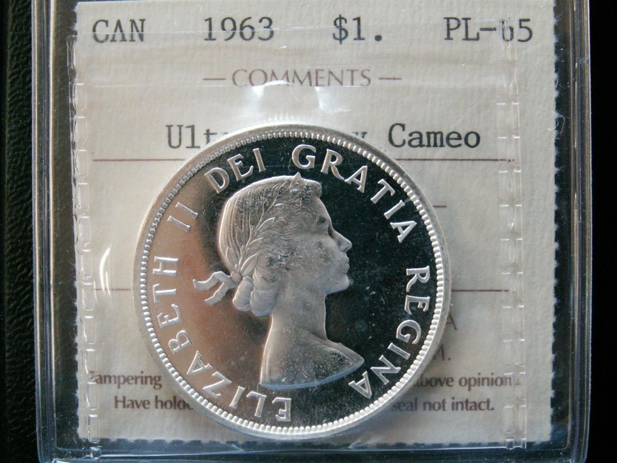 1963 $1 ICCS PL65 ULTRA HEAVY CAMEO. Only two examples finer.