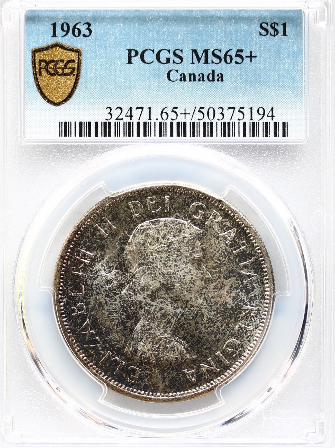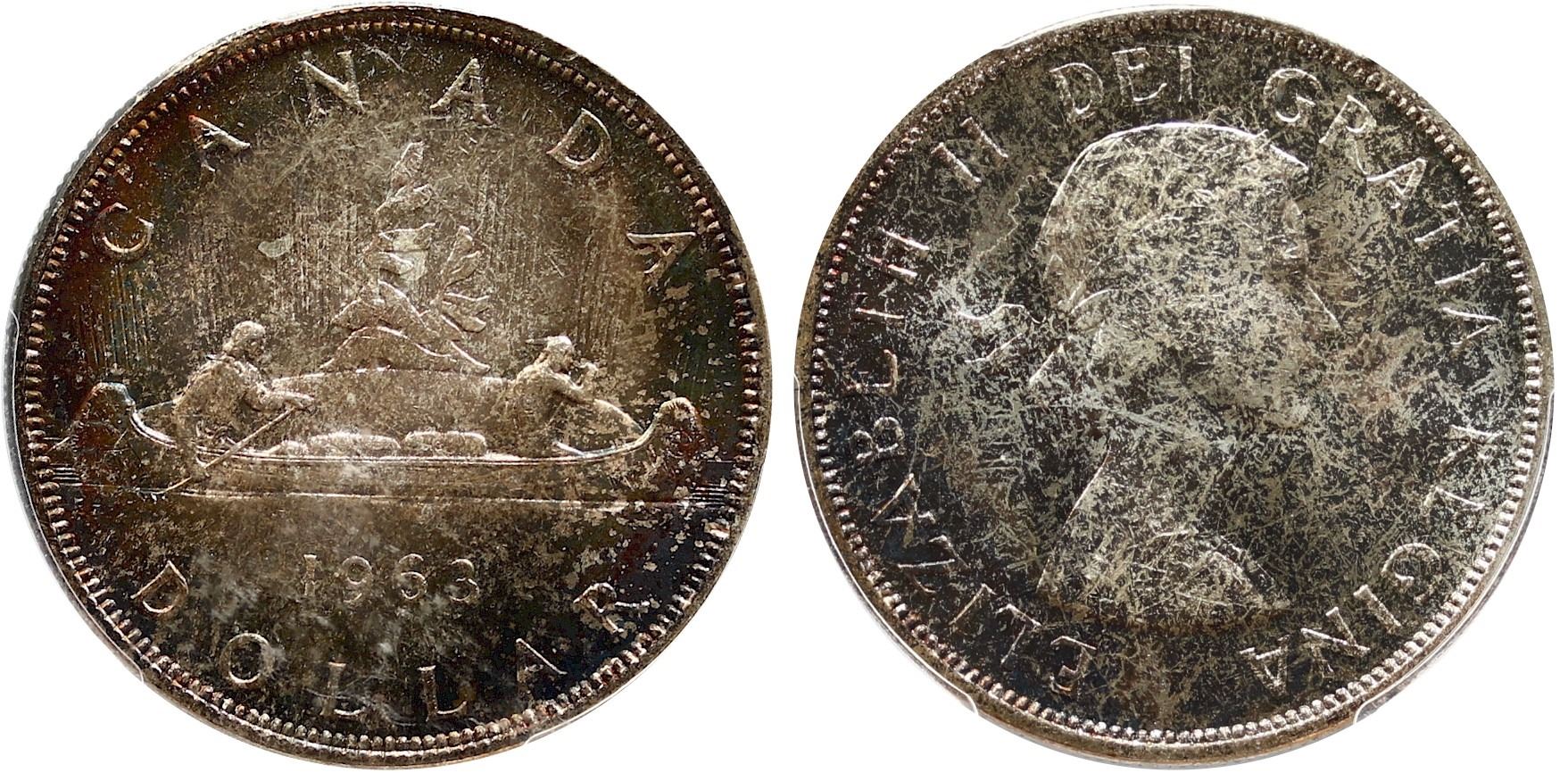 1963 $1 PCGS Gem Mint State-65+. Great surfaces with attractive toning. A desirable example.