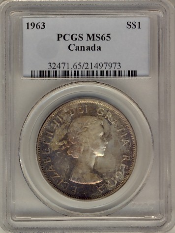 1963 $1 PCGS MS65. Superb eye appeal.