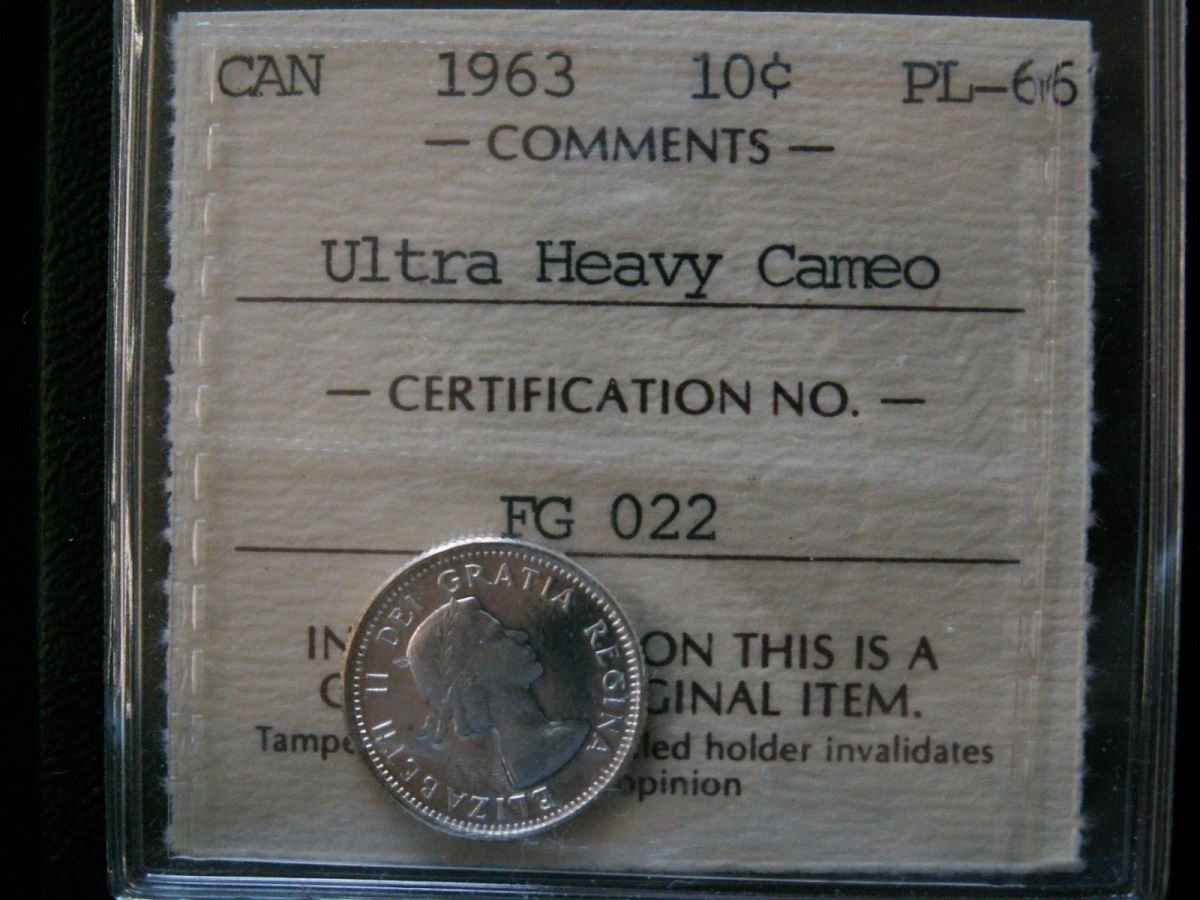 1963 10¢ ICCS PL66 ULTRA HEAVY CAMEO. Tied for finest graded.