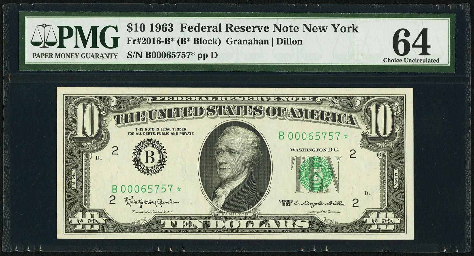 One 1963 $10 New York Federal Reserve STAR Note PMG 64.