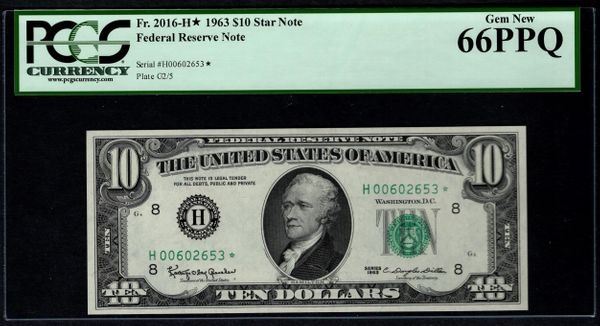 One 1963 $10 St Louis Federal Reserve STAR Note PCGS 66PPQ.