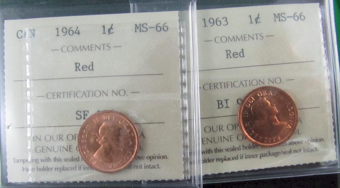 1963 & 1964 1¢ ICCS MS66RD. Superb gem full red examples. Lot of 2 coins.