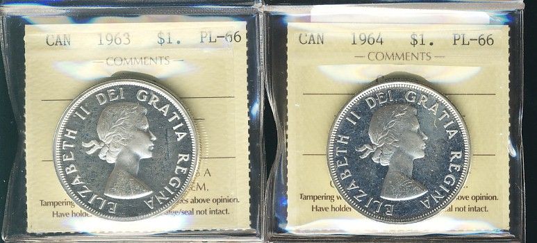 1963 & 1964 $1 ICCS PL66 Cameo. Lot of 2 coins.