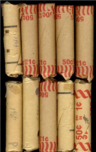 1963 & 1964 1¢. Lot of 10 rolls (5 ea.) of gem BU examples. Bought and sold as is. Unsearched