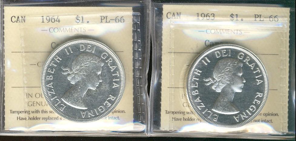 1963 & 1964 $1 PL66 Cameo. Lot of 2 ICCS coins.