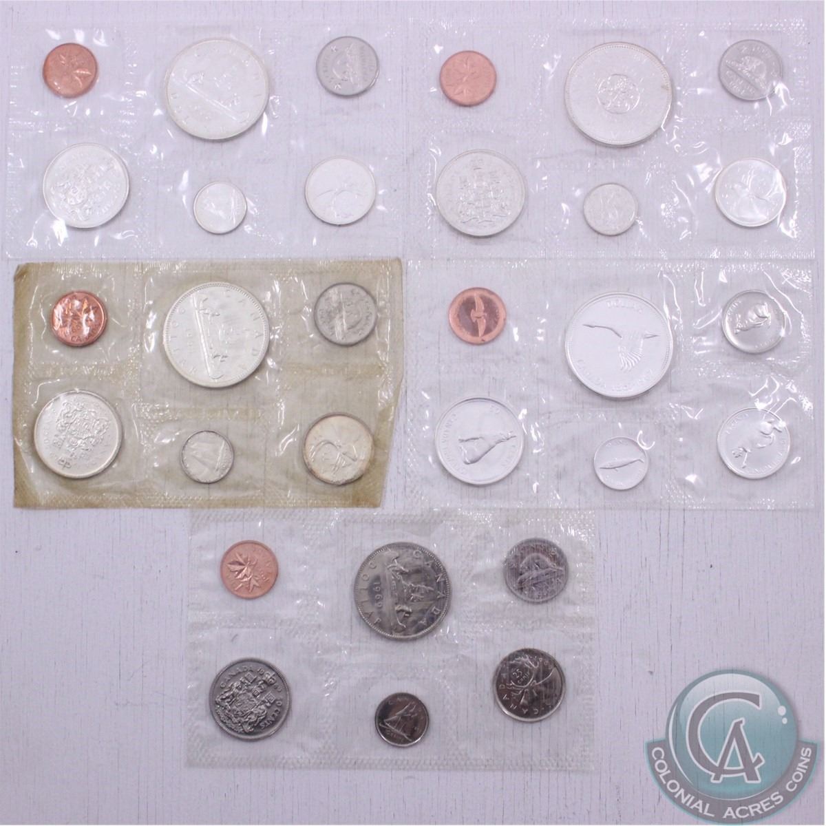 1963,1964,1965,1967, and 1969 Canada Proof-like Uncirculated sets in Original Plastic. ( some coins