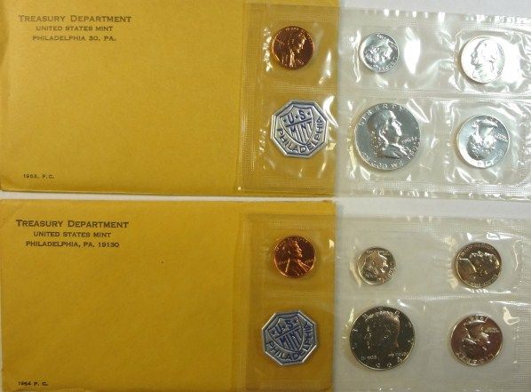 1963 & 1964 U.S. MINT PROOF SETS, ORIGINAL PACKAGING