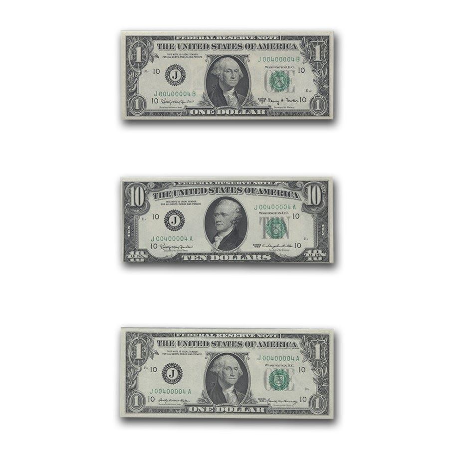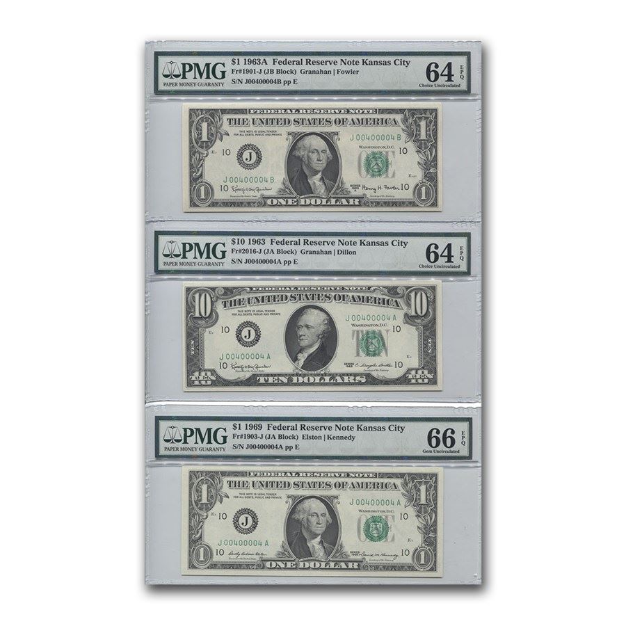 1963-1969 Trio of FRN Notes Unc 64-66 PMG (Same Serial Numbers)