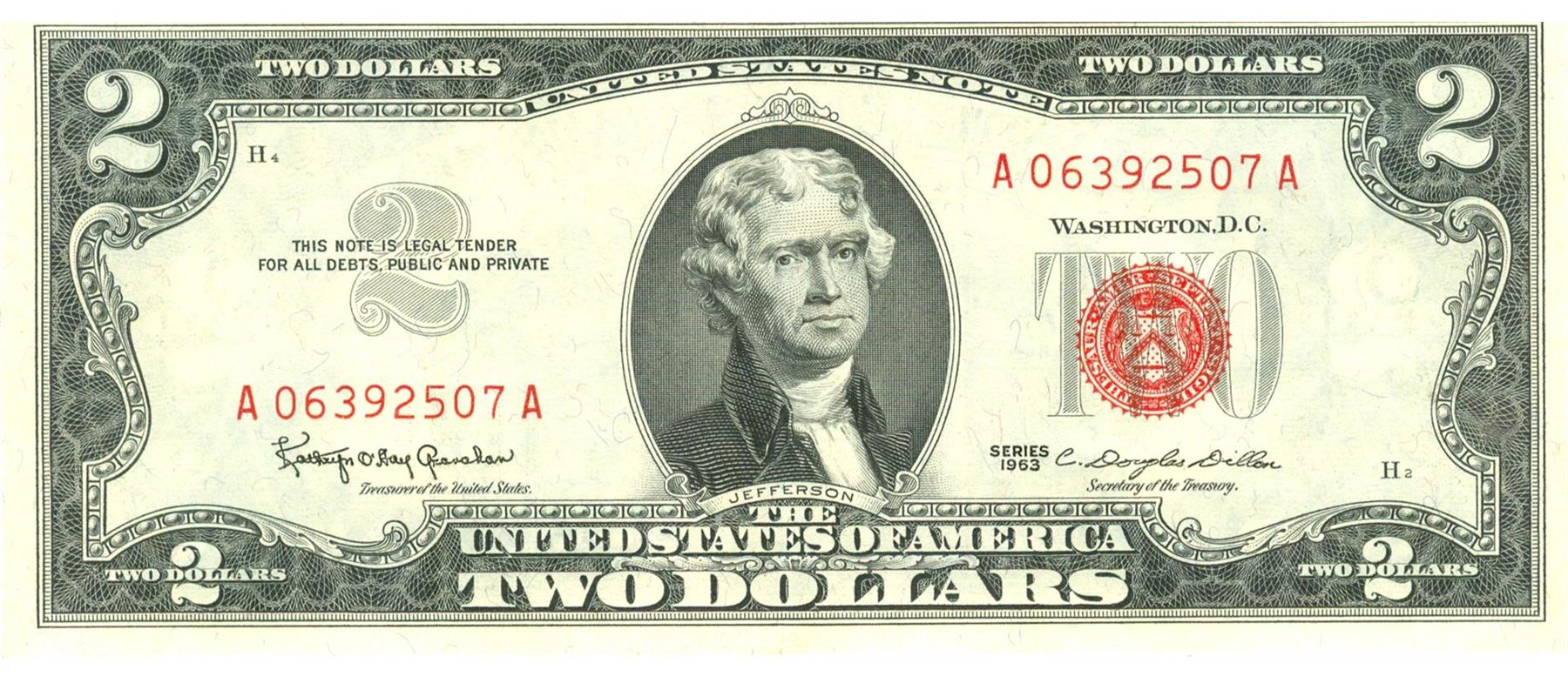 1963 $2 Choice Circulated Red Seal Note.