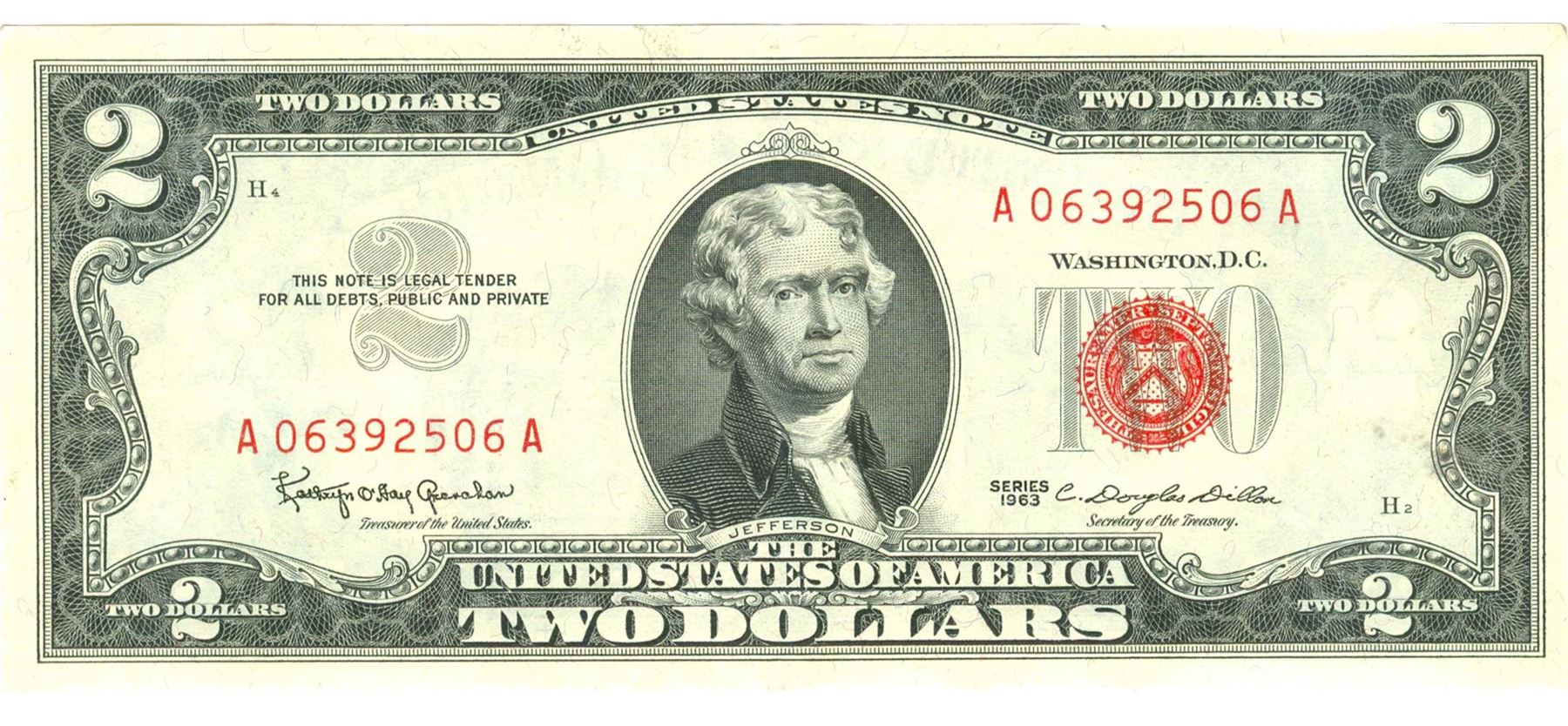 1963 $2 Choice Circulated Red Seal Note.
