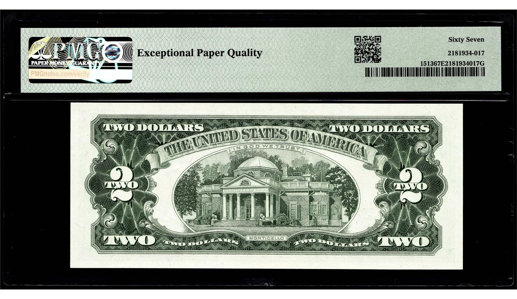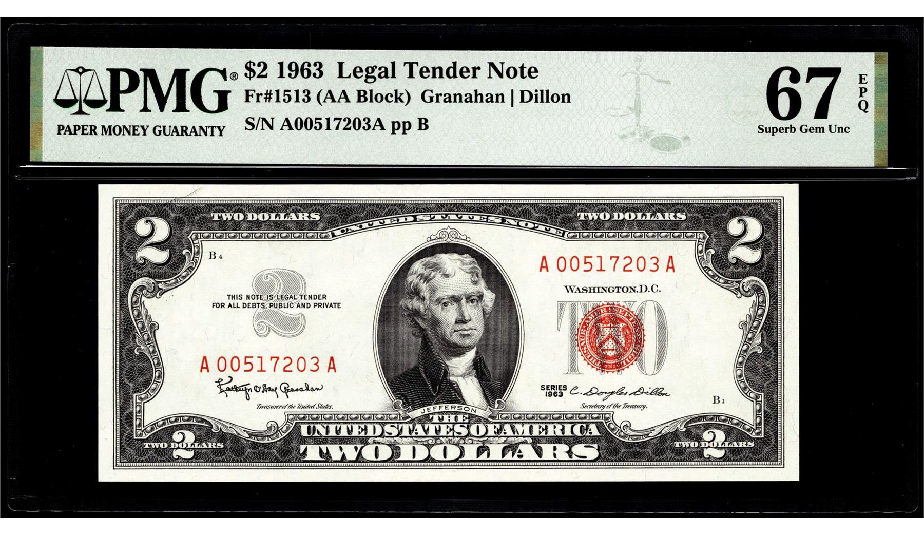 One 1963 $2 Legal Tender Note Fr.1513 PMG Superb Gem Uncirculated 67EPQ. PMG Certified.