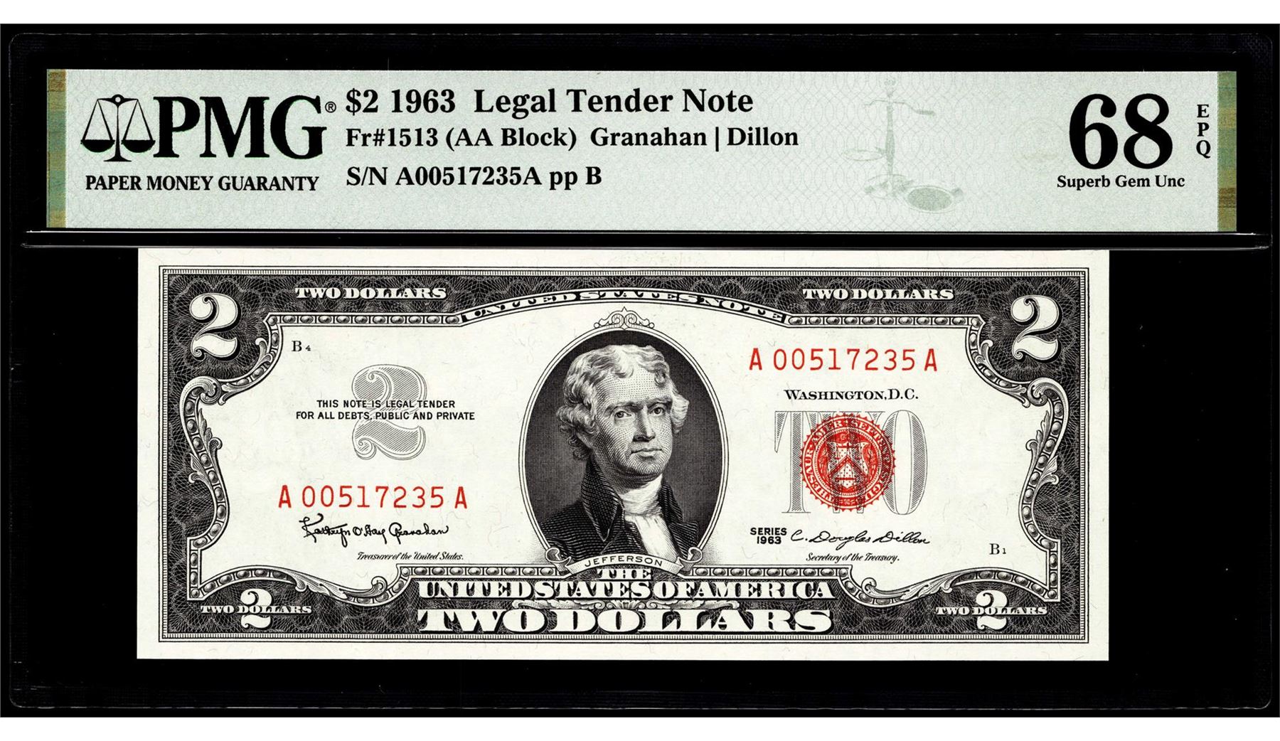 1963 $2 Legal Tender Note Fr.1513 PMG Superb Gem Uncirculated 68EPQ