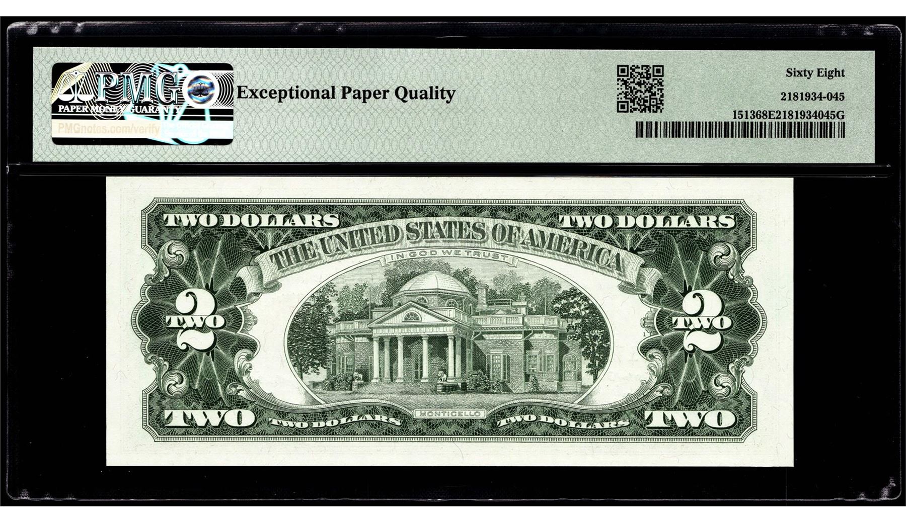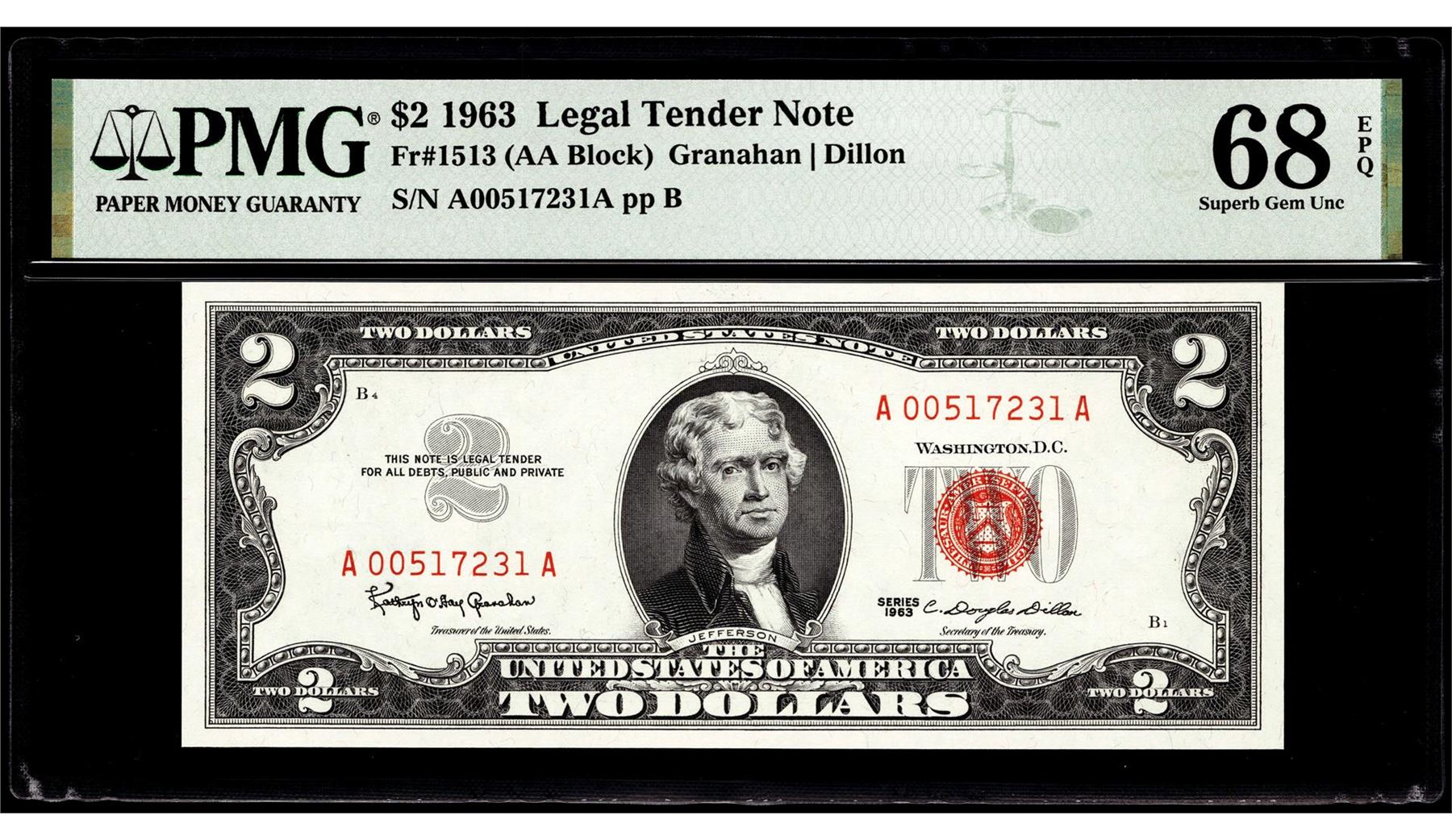 One 1963 $2 Legal Tender Note Fr.1513 PMG Superb Gem Uncirculated 68EPQ. PMG Certified.