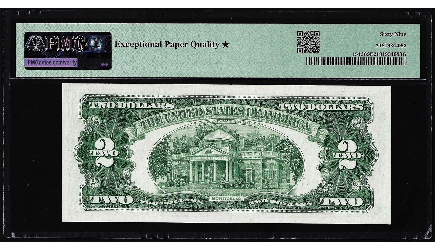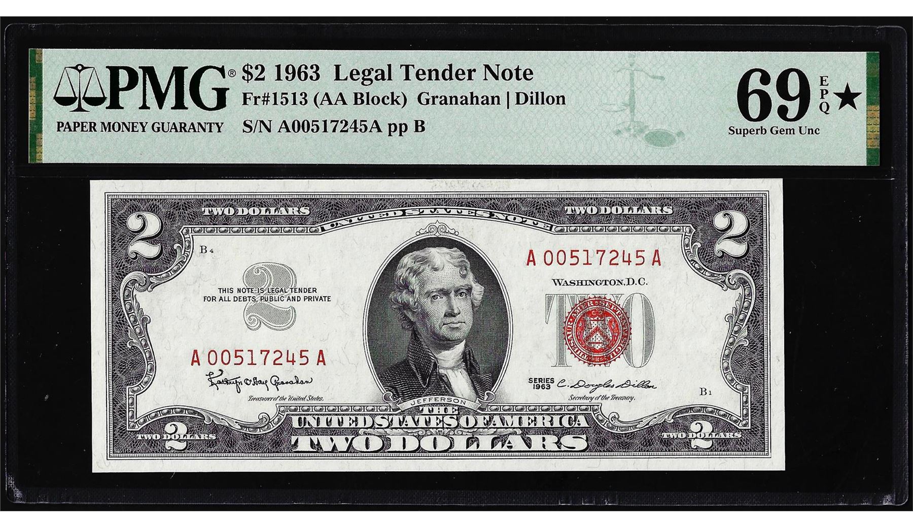 One 1963 $2 Legal Tender Note Fr.1513 PMG Superb Gem Uncirculated 69EPQ* Star. PMG Certified.