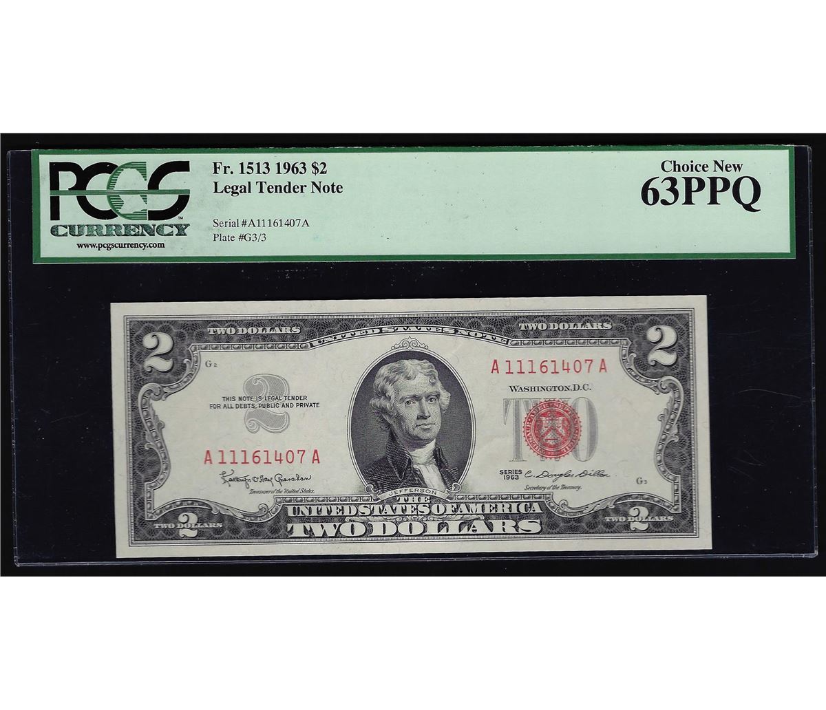 One 1963 $2 Legal Tender Note PCGS Choice New 63PPQ. PCGS Graded.