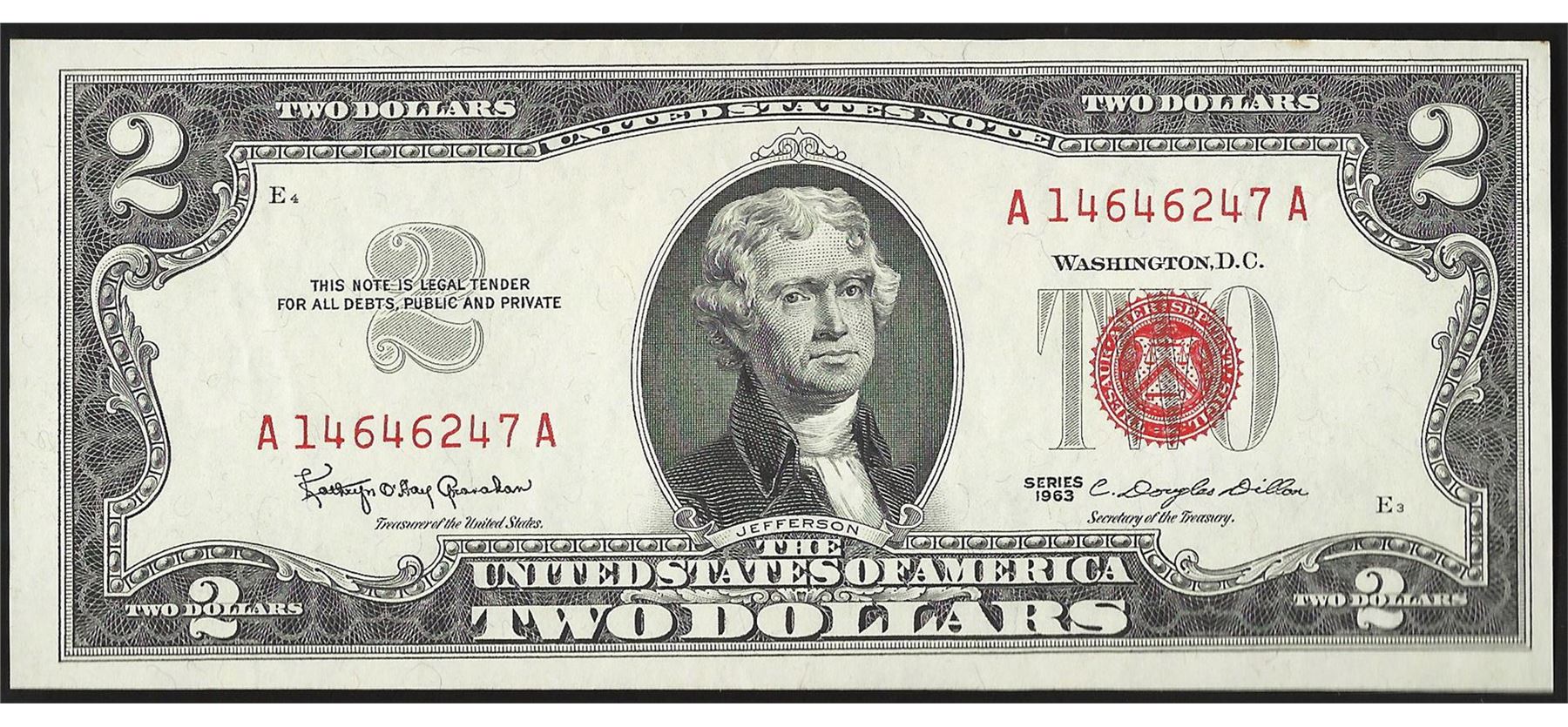 One 1963 $2 Legal Tender Note.