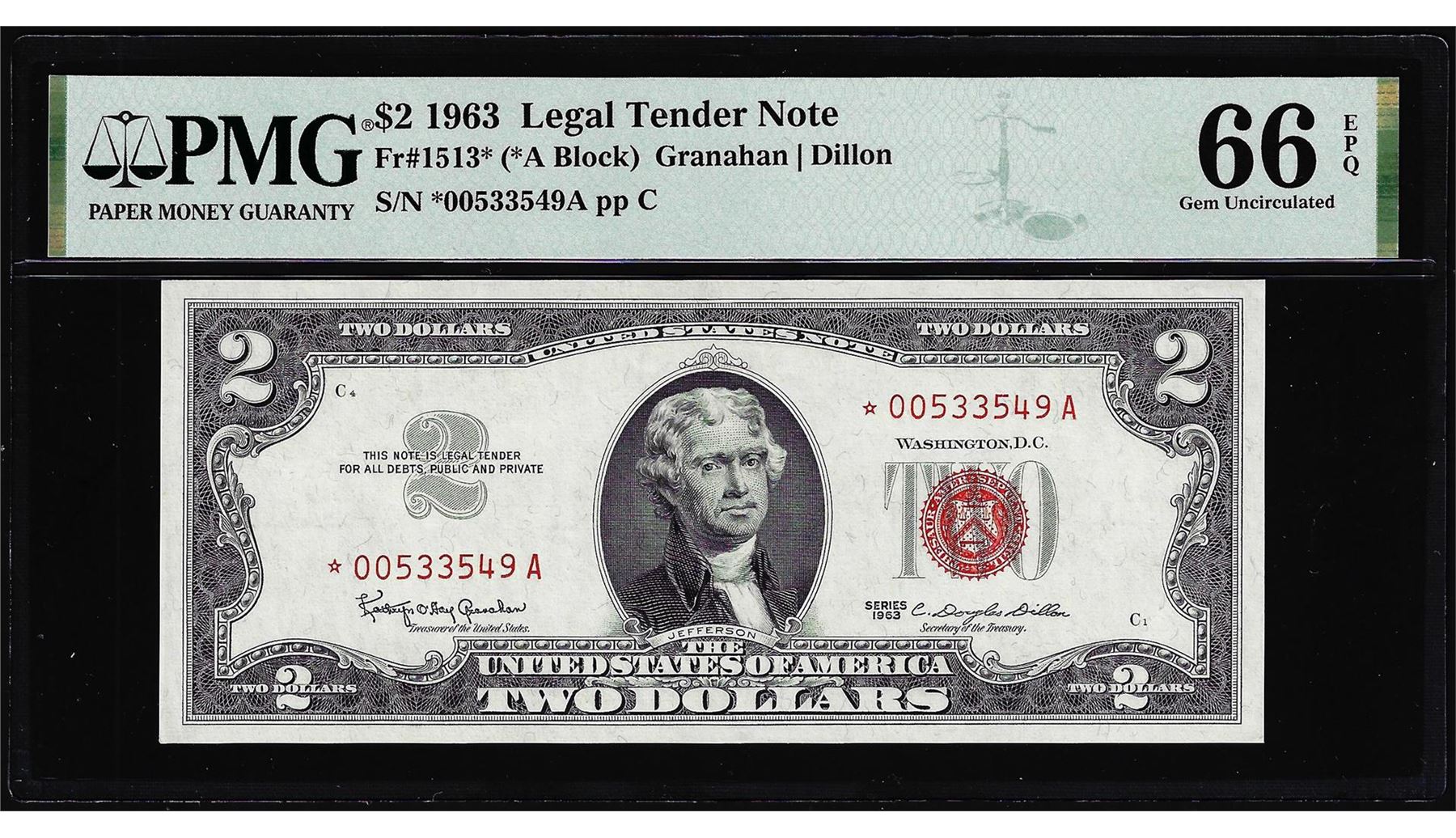 1963 $2 Legal Tender STAR Note Fr.1513* PMG Gem Uncirculated 66EPQ