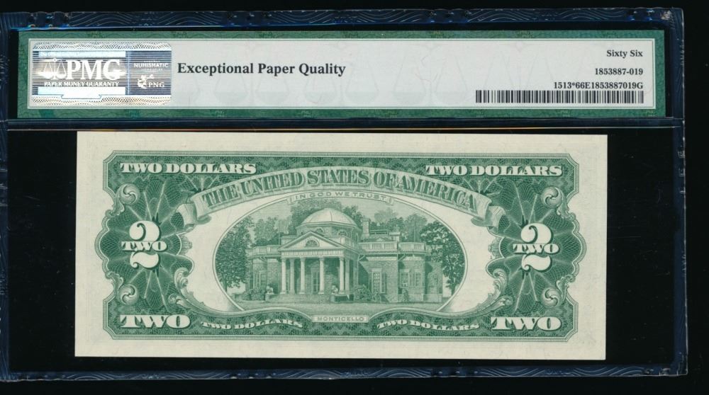 One 1963 $2 Legal Tender STAR Note PMG 66EPQ.