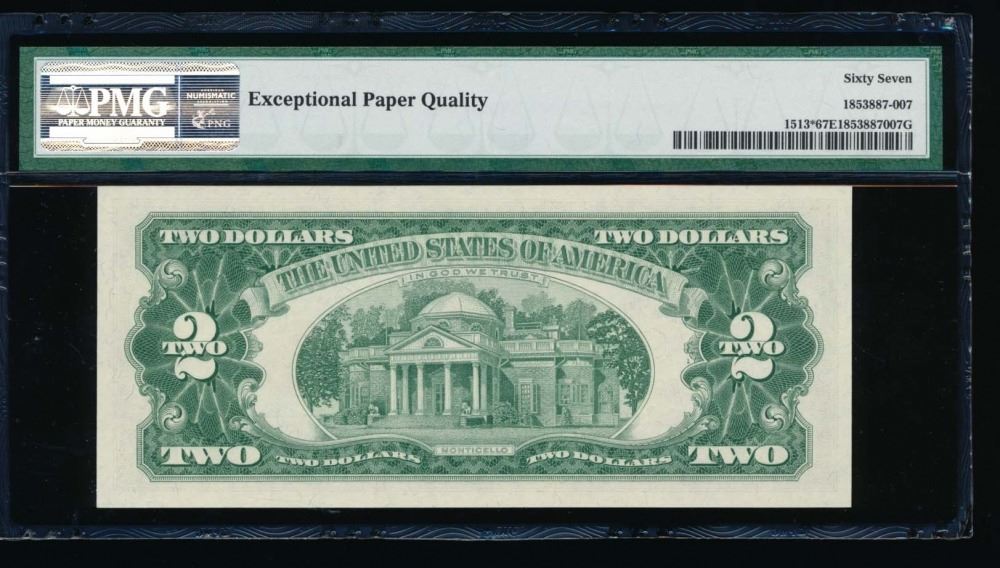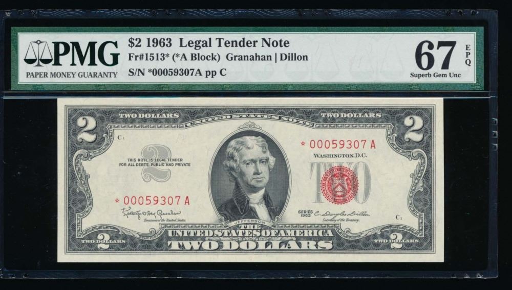 One 1963 $2 Legal Tender Star Note PMG 67EPQ.