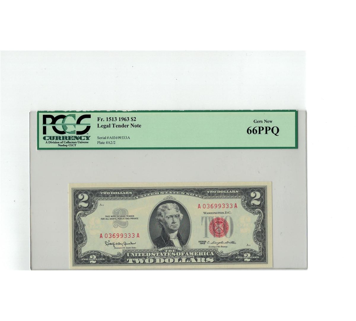 1963 $2 PCGS Gem New 66PPQ Legal Tender Note. PCGS Certified.