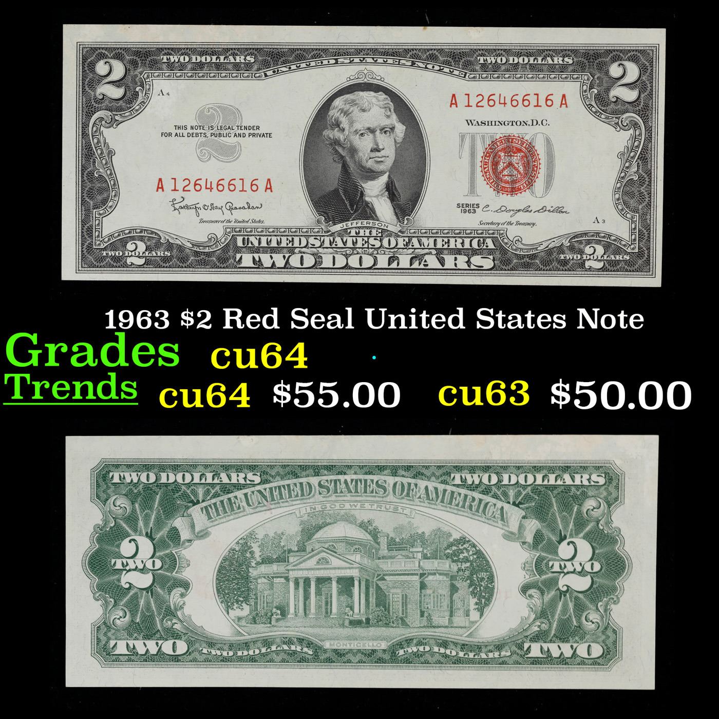1963 $2 Red Seal United States Note Grades Choice CU.