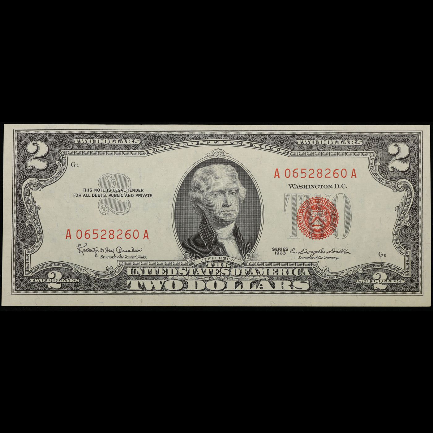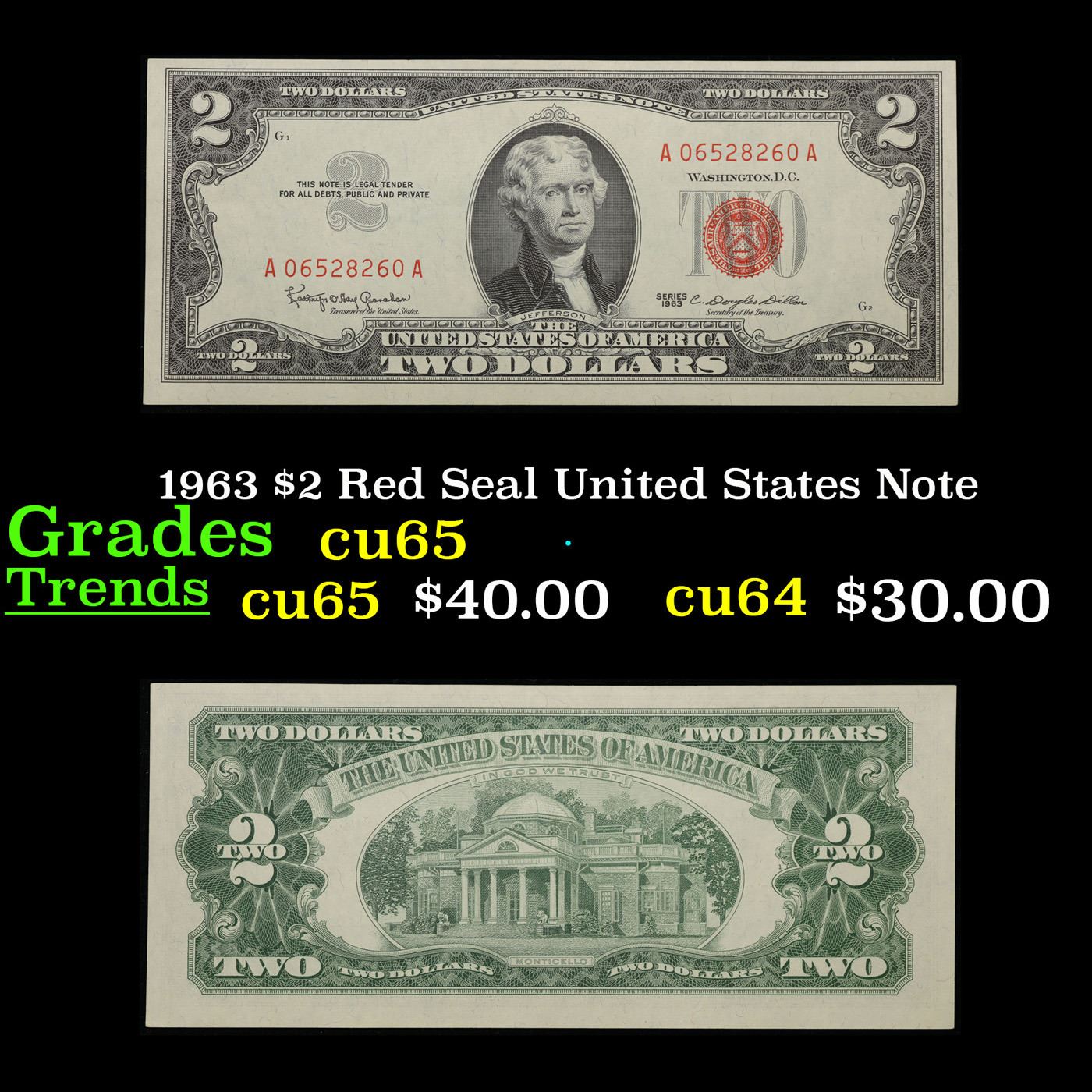 1963 $2 Red Seal United States Note Grades Gem CU.