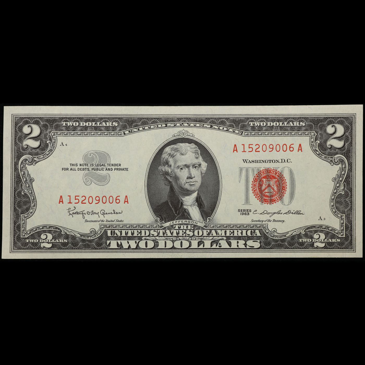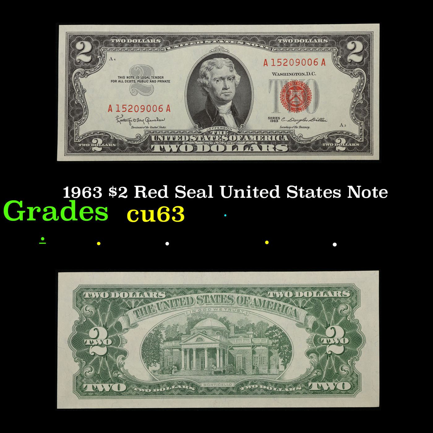 1963 $2 Red Seal United States Note Grades Select CU.