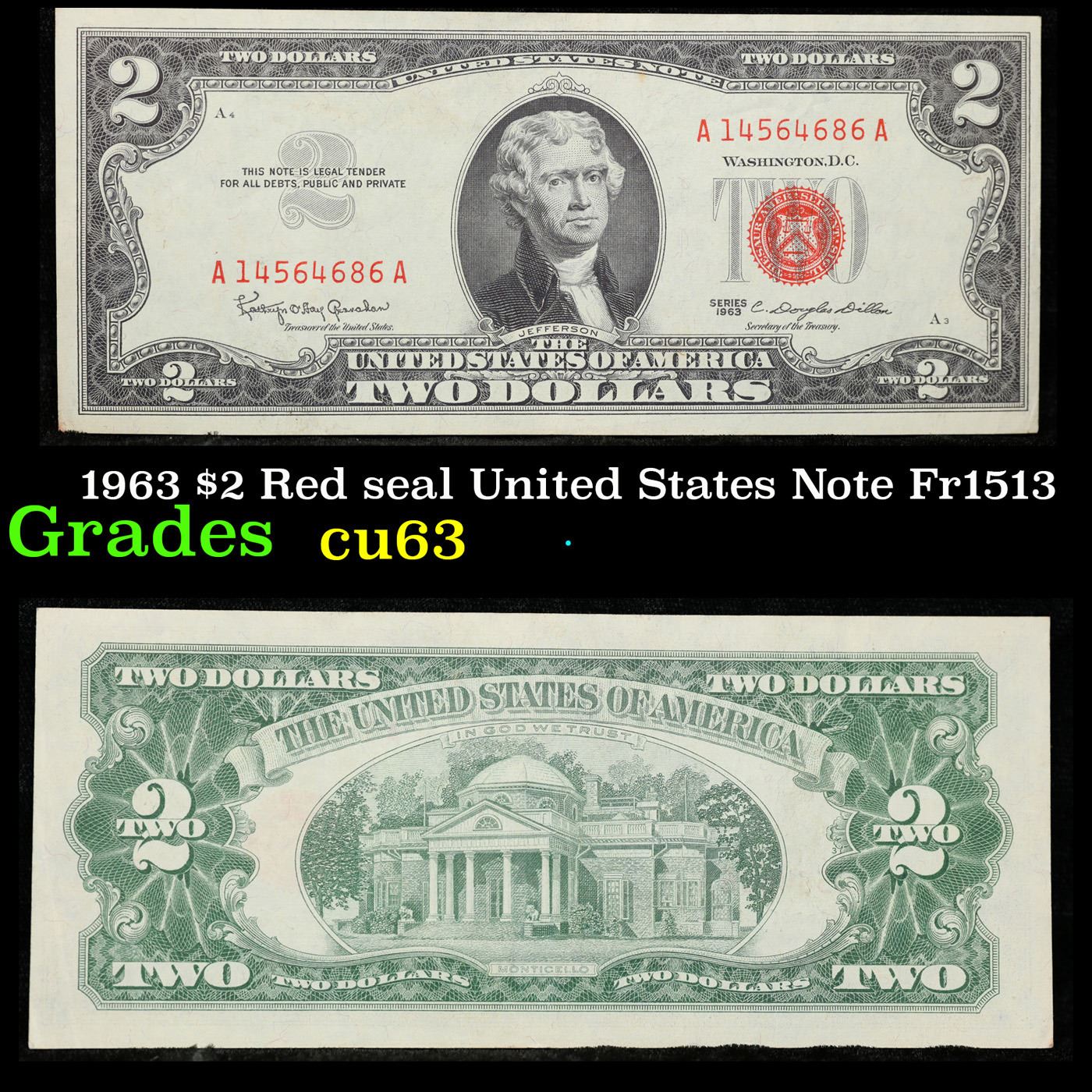 1963 $2 Red seal United States Note Fr1513 Grades Select CU.
