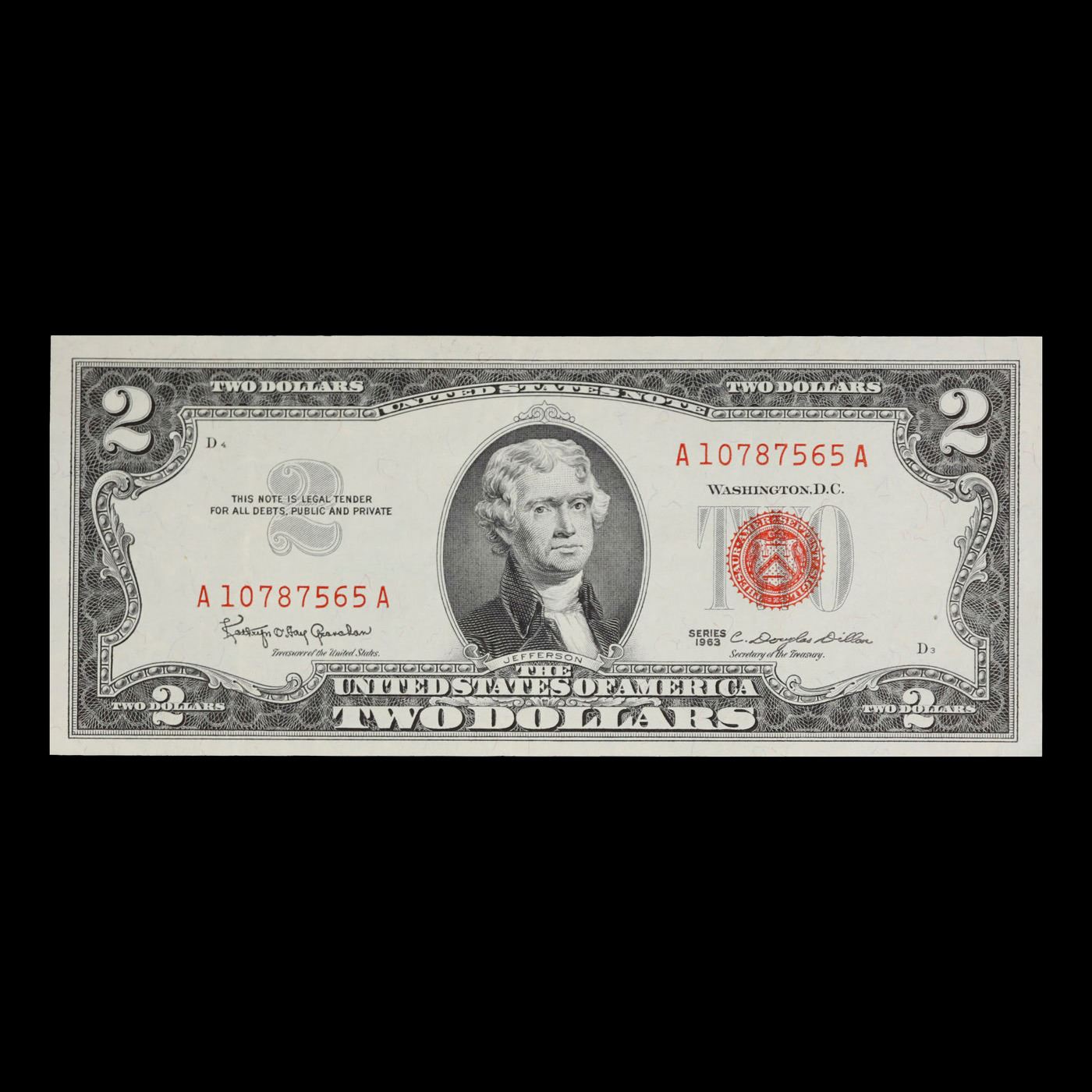 1963 $2 Red seal United States Note Grades Choice AU.