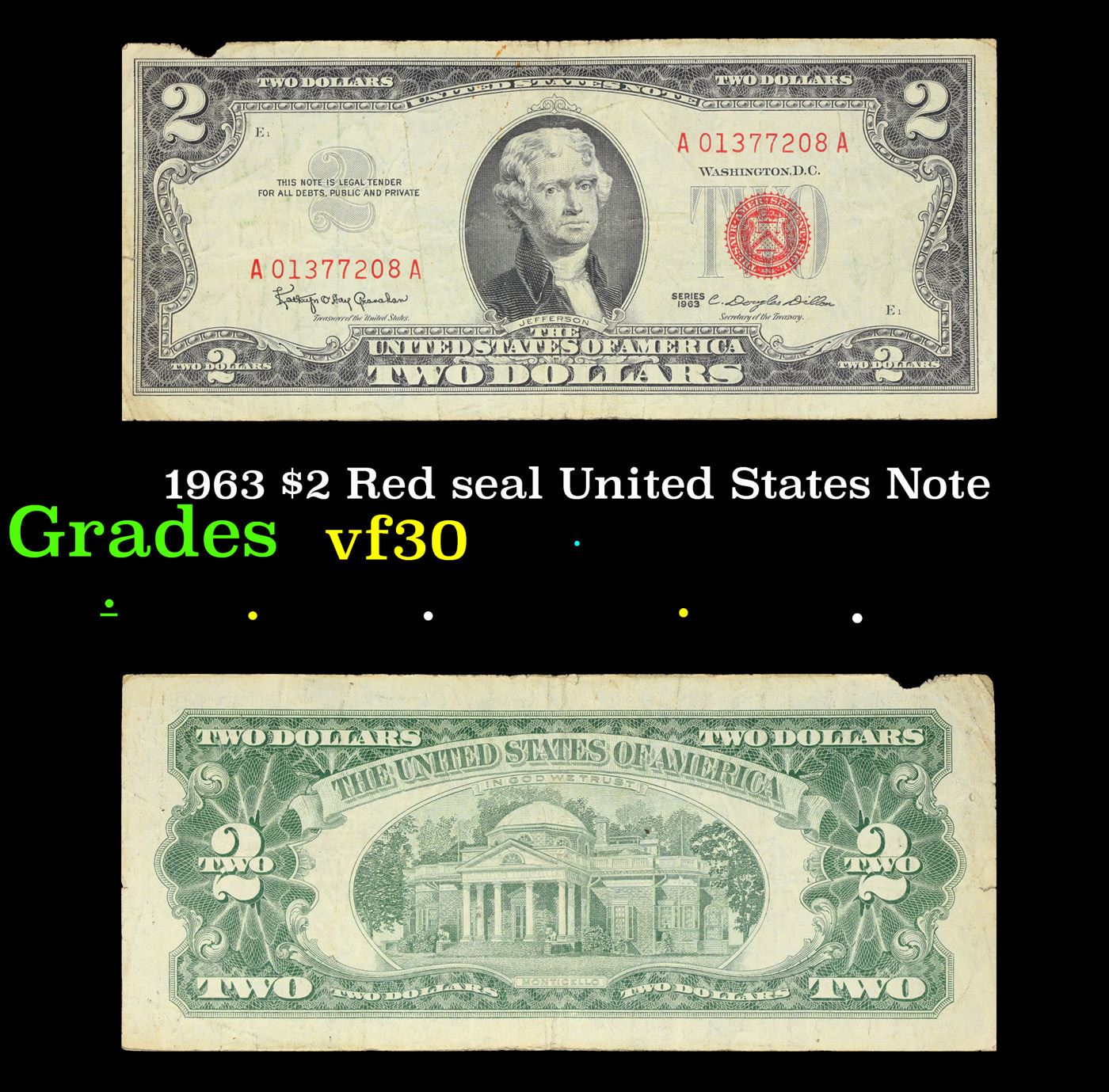 1963 $2 Red seal United States Note Grades vf++.