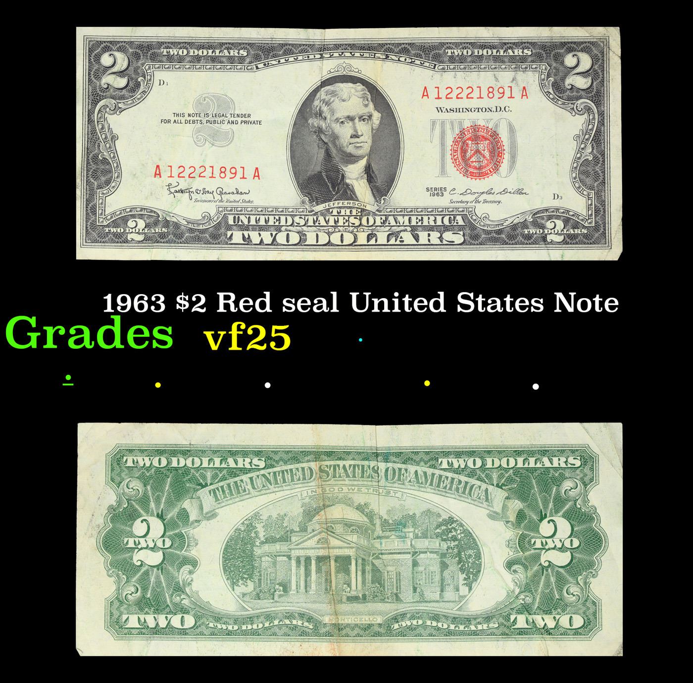 1963 $2 Red seal United States Note Grades vf+.