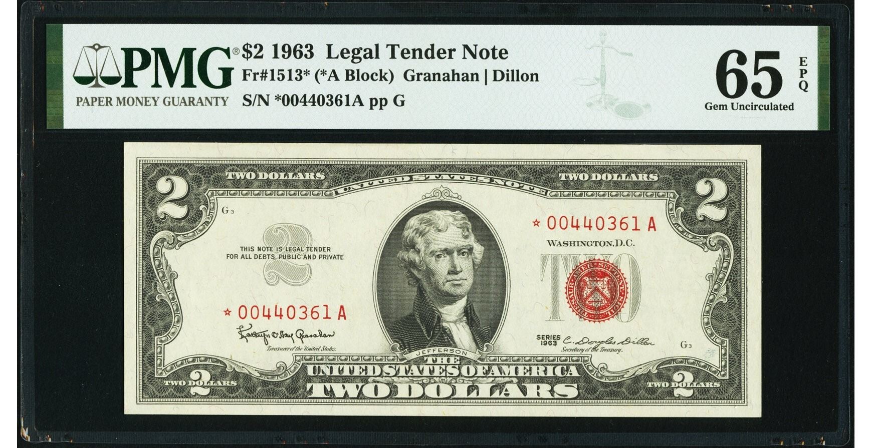 One 1963 $2 STAR Legal Tender Note PMG 65EPQ.