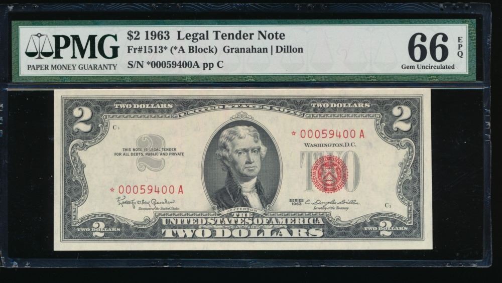 One 1963 $2 STAR Legal Tender Note PMG 66EPQ.